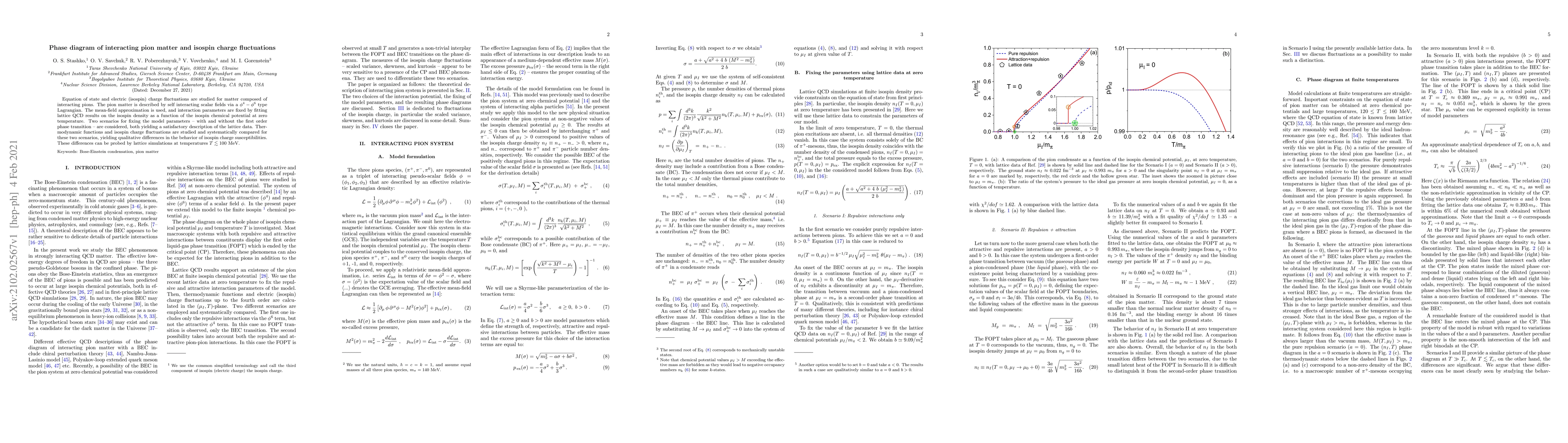This paper investigates the equation of state and isospin charge fluctuations in interacting pion matter using a self-interacting scalar field model. The study compares two scenarios with and without a first-order phase transition, revealing qualitative differences in isospin charge susceptibilities that can be tested in lattice simulations at temperatures around 100 MeV.