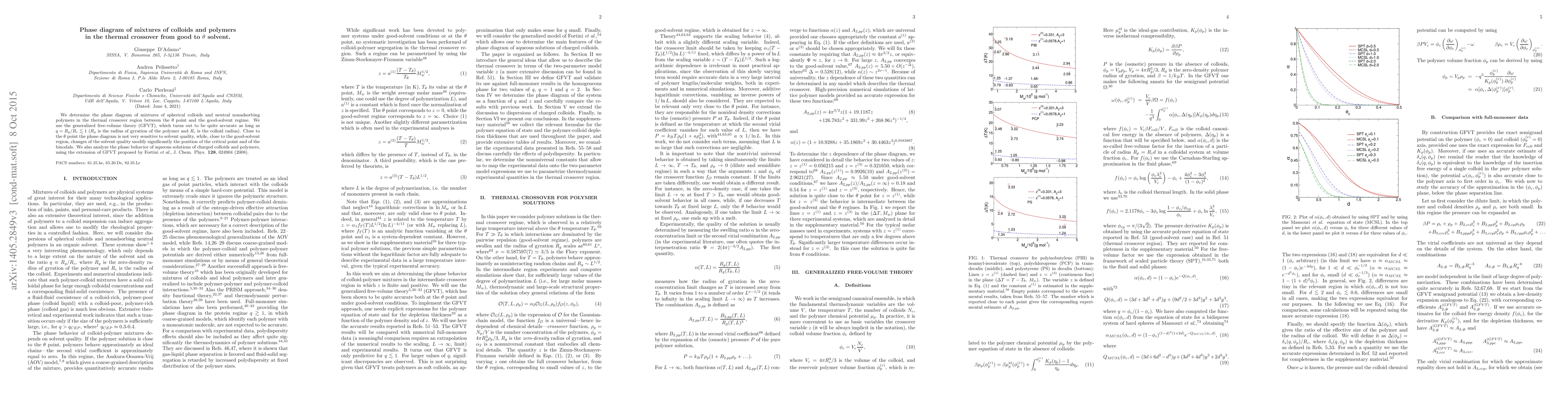 We determine the phase diagram of mixtures of spherical colloids and neutral nonadsorbing polymers in the thermal crossover region between the $\theta$ point and the good-solvent regime. We use the generalized free-volume theory (GFVT), which turns out to be quite accurate as long as $q = R_g/R_c\lesssim 1$ ($R_g$ is the radius of gyration of the polymer and $R_c$ is the colloid radius). Close to the $\theta$ point the phase diagram is not very sensitive to solvent quality, while, close to the good-solvent region, changes of the solvent quality modify significantly the position of the critical point and of the binodals. We also analyze the phase behavior of aqueous solutions of charged colloids and polymers, using the extension of GFVT proposed by Fortini et al., J. Chem. Phys. 128, 024904 (2008).
