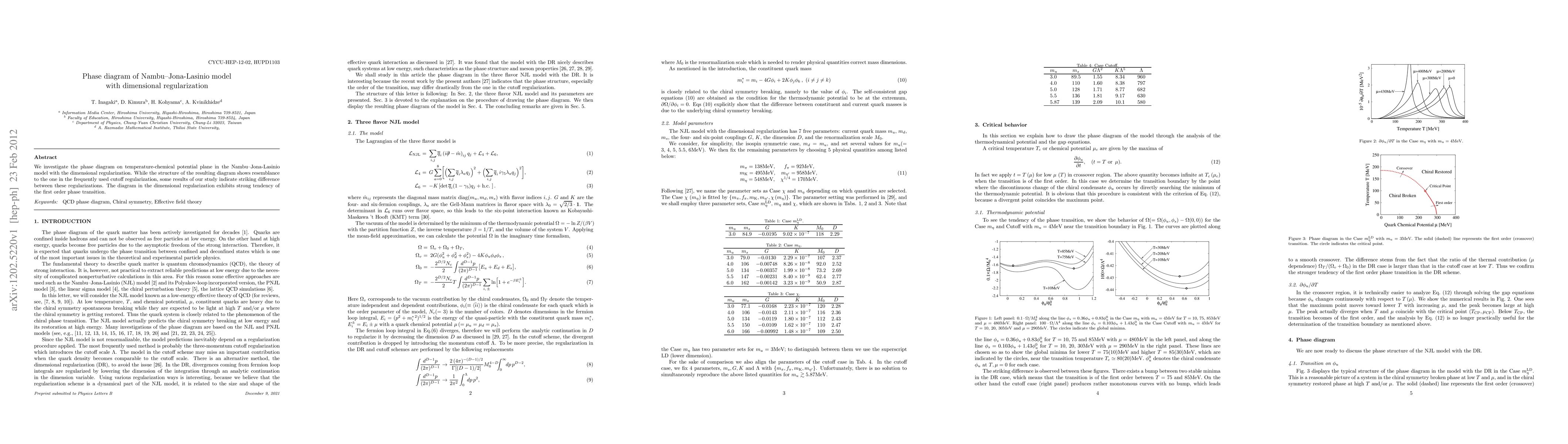 This paper explores the phase diagram of the Nambu-Jona-Lasinio model using dimensional regularization, revealing a first-order phase transition tendency, which contrasts with results from cutoff regularization.