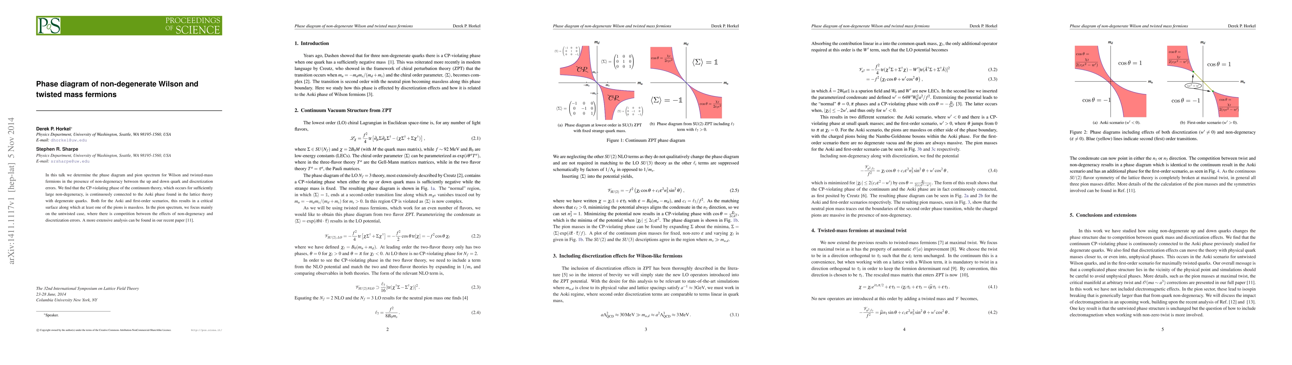 In this talk we determine the phase diagram and pion spectrum for Wilson and twisted-mass fermions in the presence of non-degeneracy between the up and down quark and discretization errors. We find that the CP-violating phase of the continuum theory, which occurs for sufficiently large non-degeneracy, is continuously connected to the Aoki phase found in the lattice theory with degenerate quarks. Both for the Aoki and first-order scenarios, this results in a critical surface along which at least one of the pions is massless. In the pion spectrum, we focus mainly on the untwisted case, where there is competition between the effects of non-degeneracy and discretization errors. A more extensive analysis can be found in our recent paper [11].