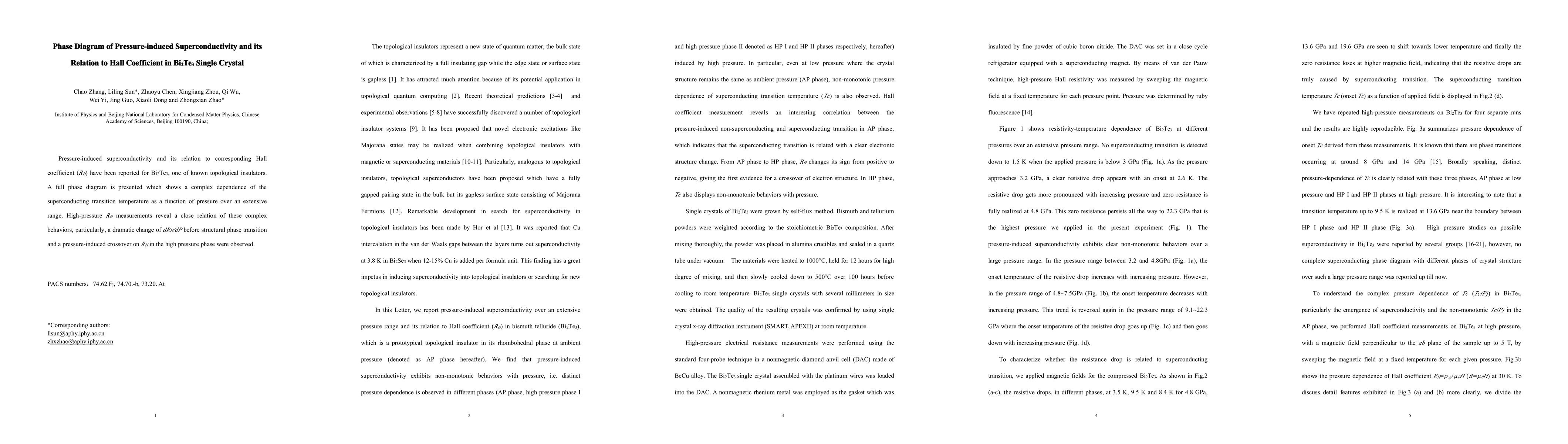 This paper presents a comprehensive phase diagram of pressure-induced superconductivity in Bi2Te3, revealing a complex relationship between superconducting transition temperature and pressure. High-pressure Hall coefficient measurements highlight significant changes in dRH/dP before structural phase transitions and a notable pressure-induced crossover in the high-pressure phase.