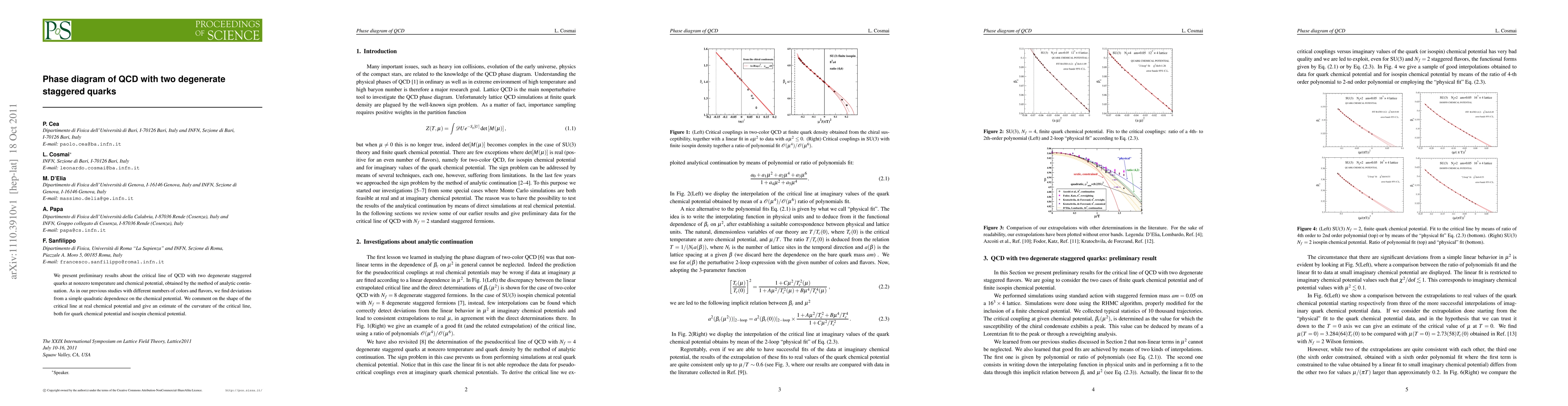 Researchers studied the critical line of Quantum Chromodynamics (QCD) with two degenerate staggered quarks at nonzero temperature and chemical potential, finding deviations from a simple quadratic dependence on chemical potential.
