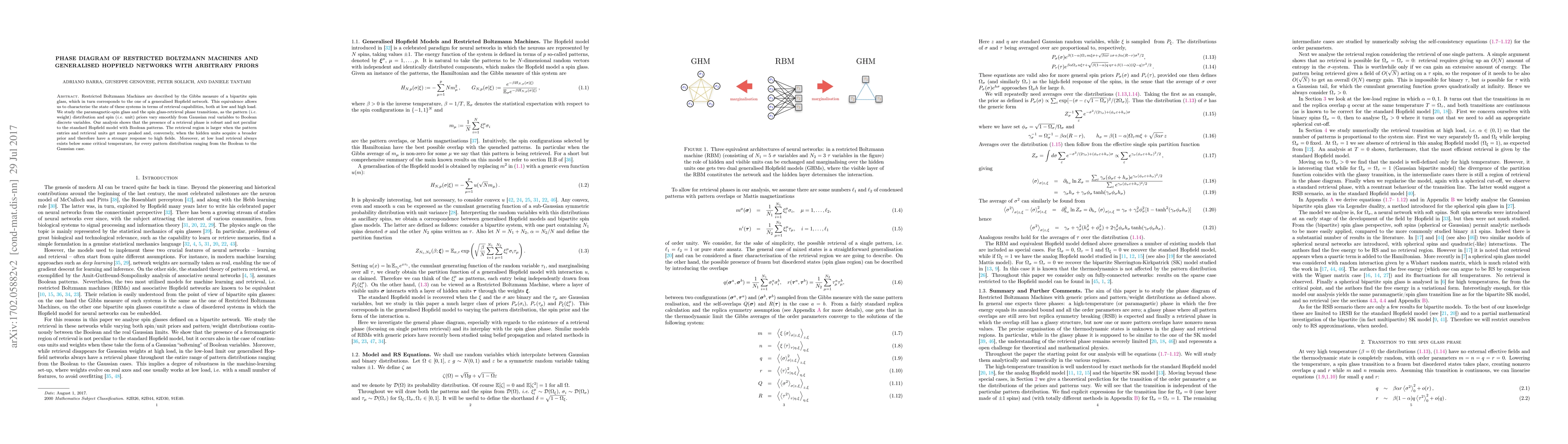 This paper investigates the phase diagram of Restricted Boltzmann Machines and generalised Hopfield networks, revealing robust retrieval capabilities across various pattern and unit priors. It finds that a retrieval phase exists even beyond Boolean patterns, with retrieval regions expanding as the pattern entries and retrieval units become more peaked.