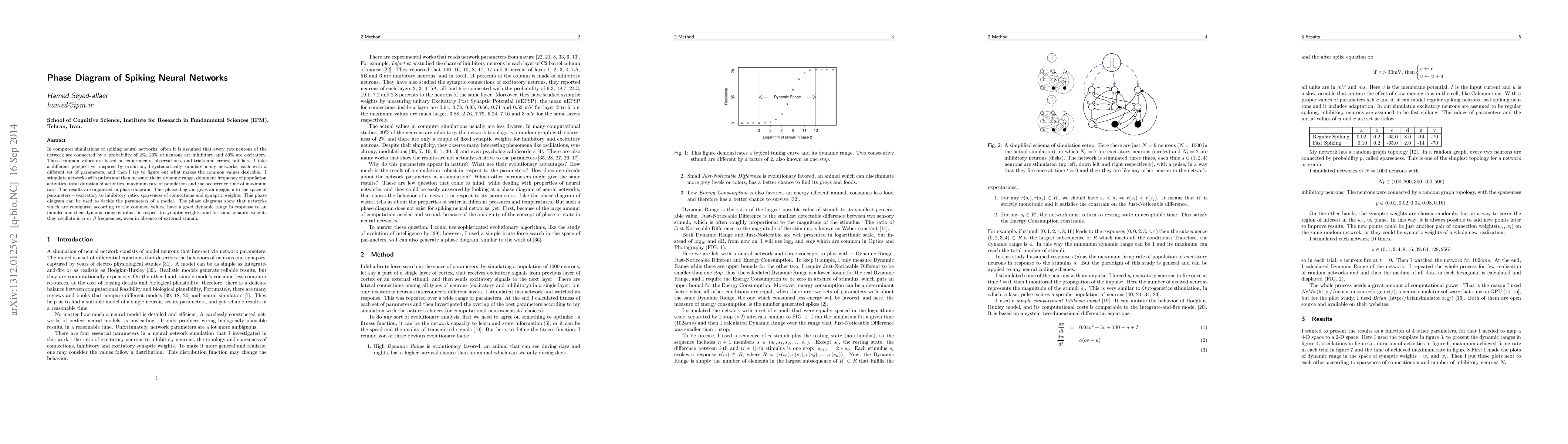 This research explores the phase diagram of spiking neural networks by systematically simulating networks with varying parameters to determine why common values (2% connection probability, 80% excitatory neurons) are effective. The study reveals that networks with these parameters exhibit a robust dynamic range and can oscillate at specific frequencies even without external stimuli, providing insights into optimal model configurations.
