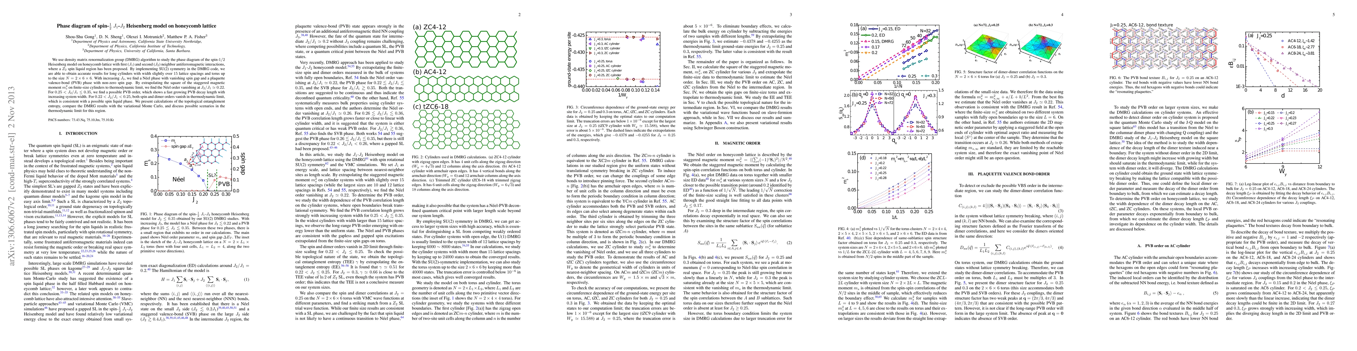 This paper uses the DMRG algorithm to study the spin-1/2 Heisenberg model on a honeycomb lattice, identifying phases including Neel, plaquette valence-bond, and potential spin liquid regions based on J2/J1 ratios. The Neel phase vanishes at J2/J1~0.22, suggesting a possible spin liquid phase or critical point between 0.22<J2/J1<0.25.