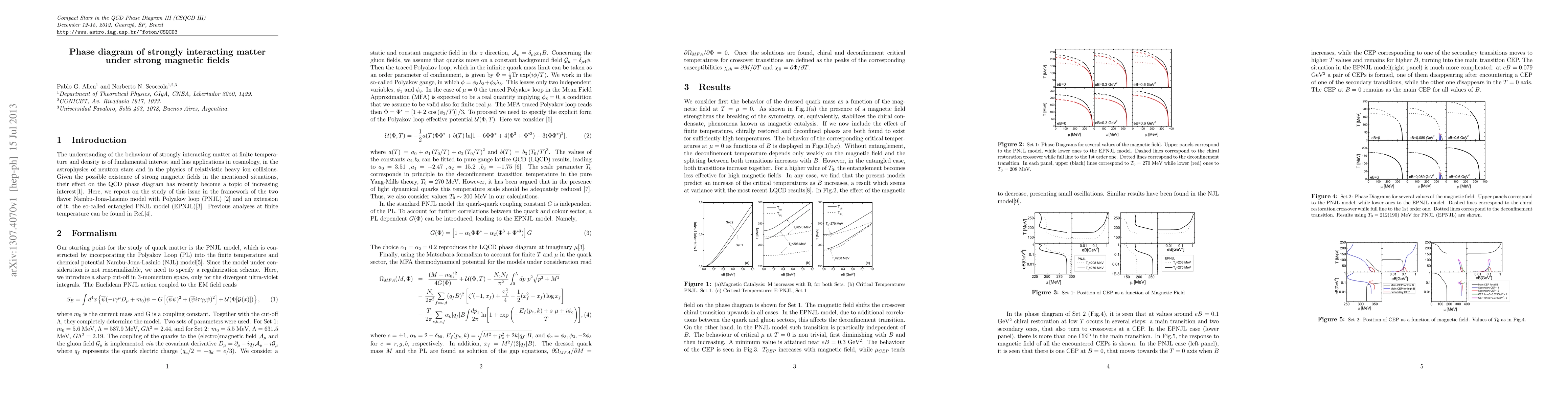 This paper investigates the impact of strong magnetic fields on the phase diagram of strongly interacting matter using the two-flavor Nambu-Jona-Lasinio model with Polyakov loop (PNJL) and its extended version, the entangled PNJL model (EPNJL). The findings contribute to understanding the behavior of matter in extreme conditions relevant to cosmology, neutron stars, and relativistic heavy ion collisions.