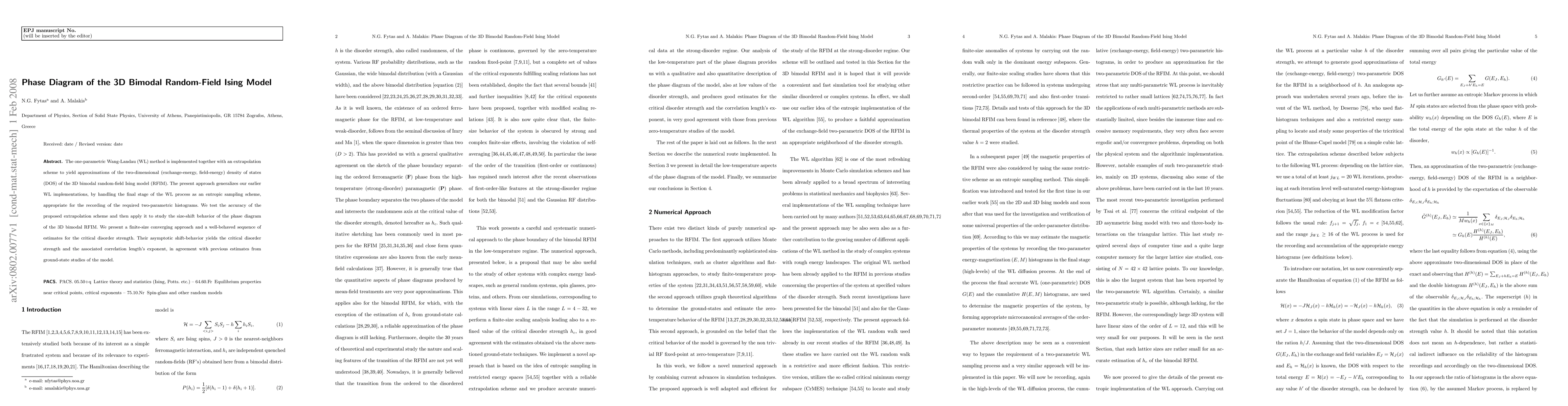 The one-parametric Wang-Landau (WL) method is implemented together with an extrapolation scheme to yield approximations of the two-dimensional (exchange-energy, field-energy) density of states (DOS) of the 3D bimodal random-field Ising model (RFIM). The present approach generalizes our earlier WL implementations, by handling the final stage of the WL process as an entropic sampling scheme, appropriate for the recording of the required two-parametric histograms. We test the accuracy of the proposed extrapolation scheme and then apply it to study the size-shift behavior of the phase diagram of the 3D bimodal RFIM. We present a finite-size converging approach and a well-behaved sequence of estimates for the critical disorder strength. Their asymptotic shift-behavior yields the critical disorder strength and the associated correlation length's exponent, in agreement with previous estimates from ground-state studies of the model.