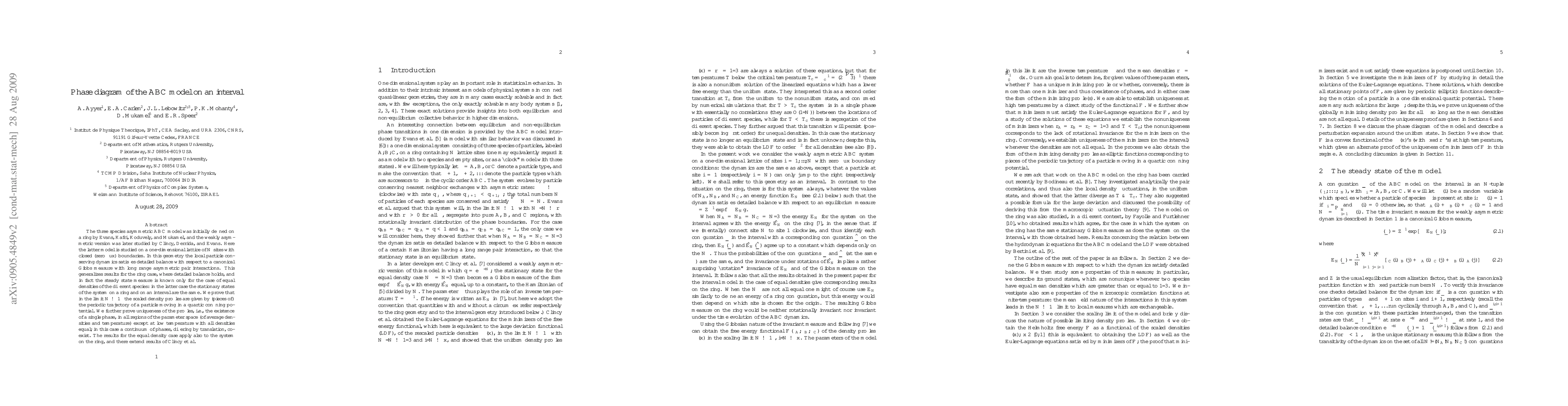 The three species asymmetric ABC model was initially defined on a ring by Evans, Kafri, Koduvely, and Mukamel, and the weakly asymmetric version was later studied by Clincy, Derrida, and Evans. Here the latter model is studied on a one-dimensional lattice of N sites with closed (zero flux) boundaries. In this geometry the local particle conserving dynamics satisfies detailed balance with respect to a canonical Gibbs measure with long range asymmetric pair interactions. This generalizes results for the ring case, where detailed balance holds, and in fact the steady state measure is known only for the case of equal densities of the different species: in the latter case the stationary states of the system on a ring and on an interval are the same. We prove that in the N to infinity limit the scaled density profiles are given by (pieces of) the periodic trajectory of a particle moving in a quartic confining potential. We further prove uniqueness of the profiles, i.e., the existence of a single phase, in all regions of the parameter space (of average densities and temperature) except at low temperature with all densities equal; in this case a continuum of phases, differing by translation, coexist. The results for the equal density case apply also to the system on the ring, and there extend results of Clincy et al.