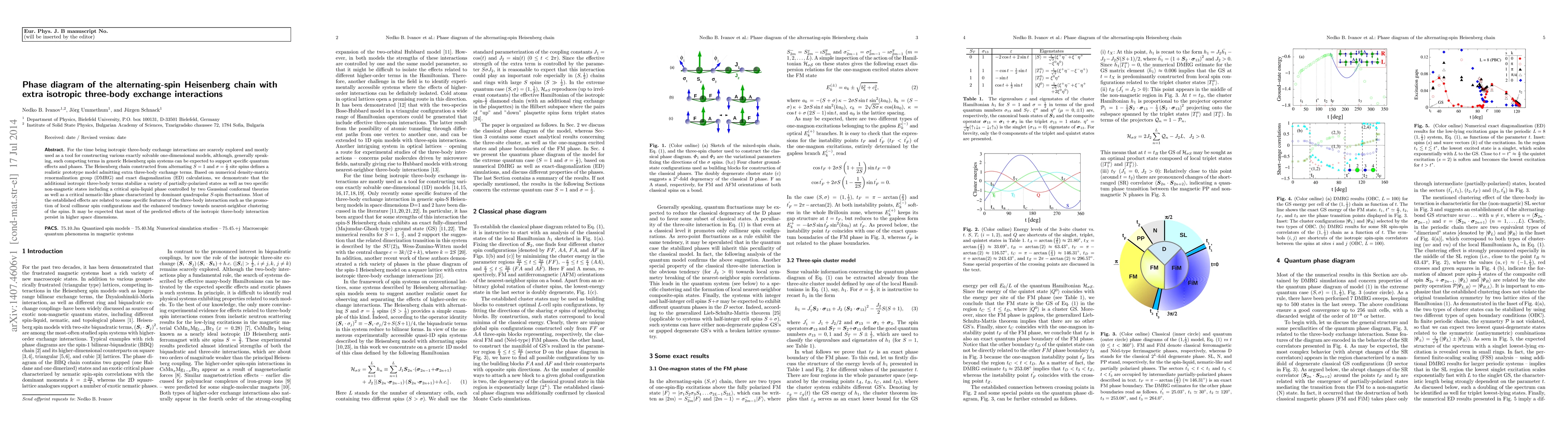 For the time being isotropic three-body exchange interactions are scarcely explored and mostly used as a tool for constructing various exactly solvable one-dimensional models, although, generally speaking, such competing terms in generic Heisenberg spin systems can be expected to support specific quantum effects and phases. The Heisenberg chain constructed from alternating S=1 and sigma=1/2 site spins defines a realistic prototype model admitting extra three-body exchange terms. Based on numerical density-matrix renormalization group (DMRG) and exact diagonalization (ED) calculations, we demonstrate that the additional isotropic three-body terms stabilize a variety of partially-polarized states as well as two specific non-magnetic states including a critical spin-liquid phase controlled by two Gaussinal conformal theories as well as a critical nematic-like phase characterized by dominant quadrupolar S-spin fluctuations. Most of the established effects are related to some specific features of the three-body interaction such as the promotion of local collinear spin configurations and the enhanced tendency towards nearest-neighbor clustering of the spins. It may be expected that most of the predicted effects of the isotropic three-body interaction persist in higher space dimensions.