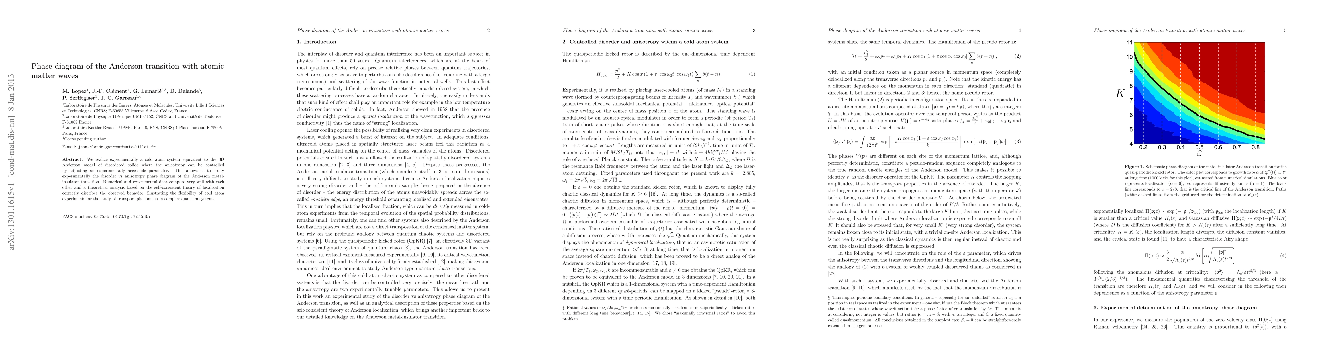 This research experimentally investigates a cold atom system mimicking the 3D Anderson model of disordered solids, allowing for the study of the metal-insulator transition influenced by disorder and anisotropy. Experimental and numerical results align closely, and theoretical analysis confirms the observed behavior, demonstrating cold atom experiments' effectiveness in studying quantum transport phenomena.
