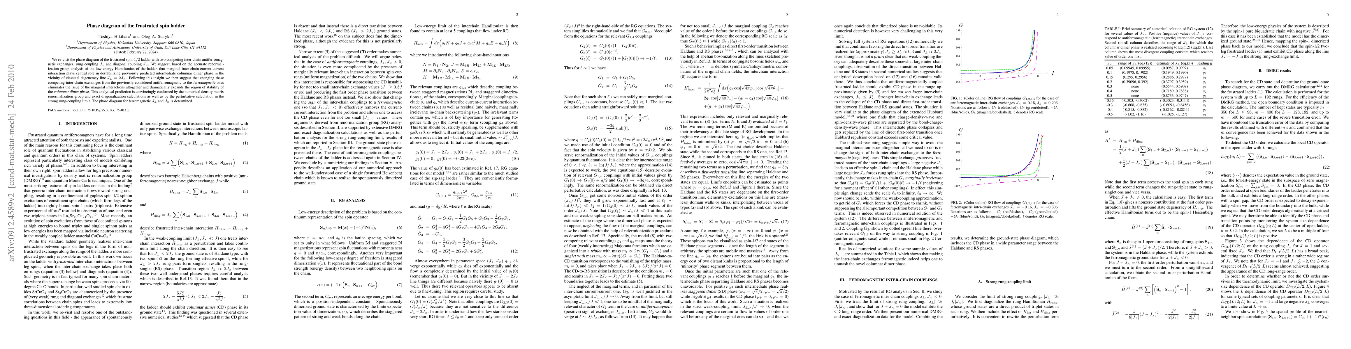 This paper revisits the phase diagram of a frustrated spin-1/2 ladder system, revealing that marginal inter-chain current-current interactions destabilize the previously predicted columnar dimer phase. The study suggests that switching to ferromagnetic inter-chain exchanges expands the stability region of the dimer phase, a prediction confirmed by numerical and analytical methods.