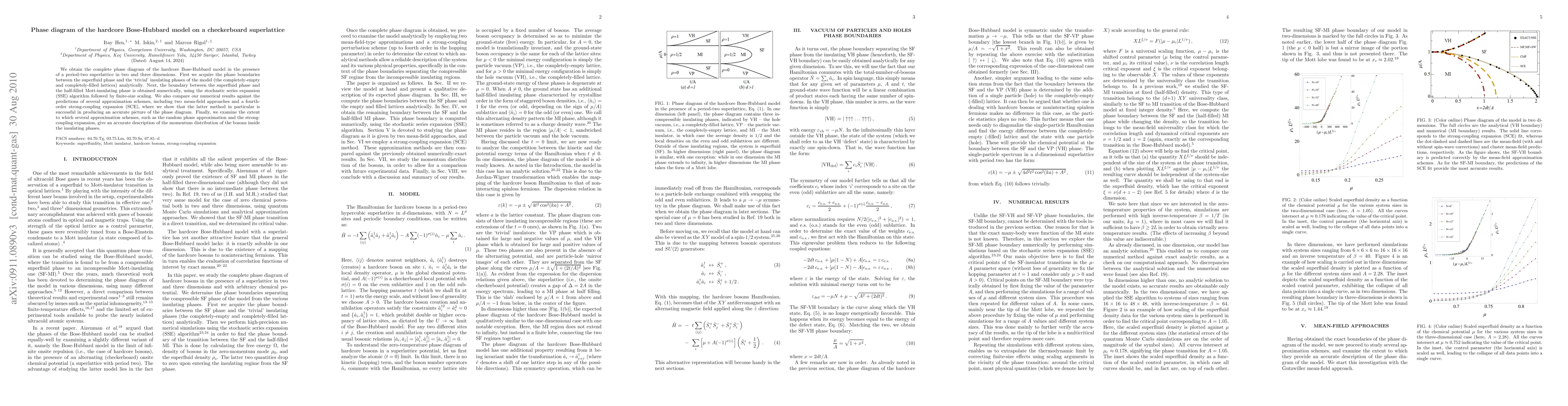 This paper presents the complete phase diagram of the hardcore Bose-Hubbard model on a checkerboard superlattice, analytically determining phase boundaries between superfluid and trivial insulating phases and numerically identifying the boundary with the half-filled Mott insulator using the SSE algorithm. The study also evaluates the accuracy of various approximation schemes in predicting the phase diagram and momentum distribution of bosons.
