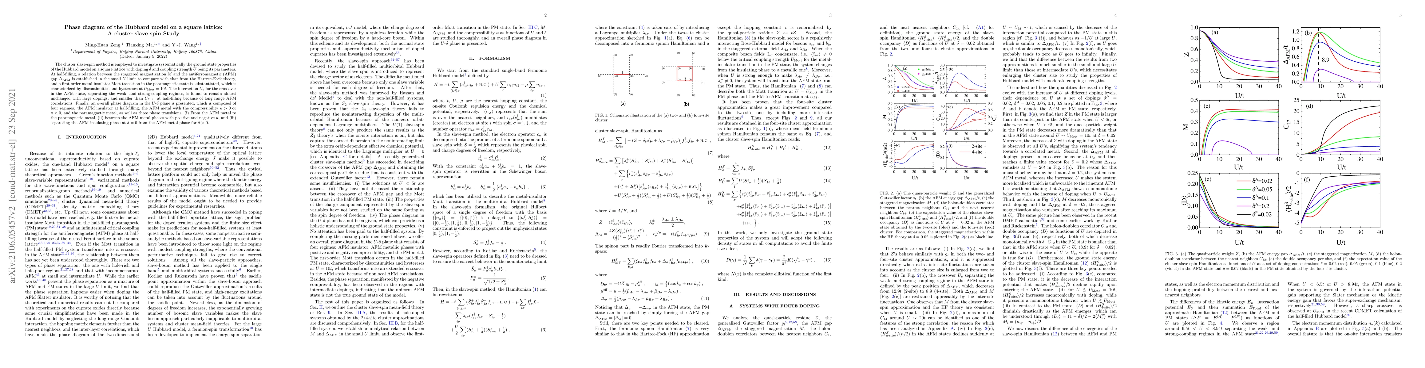 The cluster slave-spin method was employed to investigate the ground state properties of the single-band 2D Hubbard model on a square lattice systematically, varying parameters U and δ.