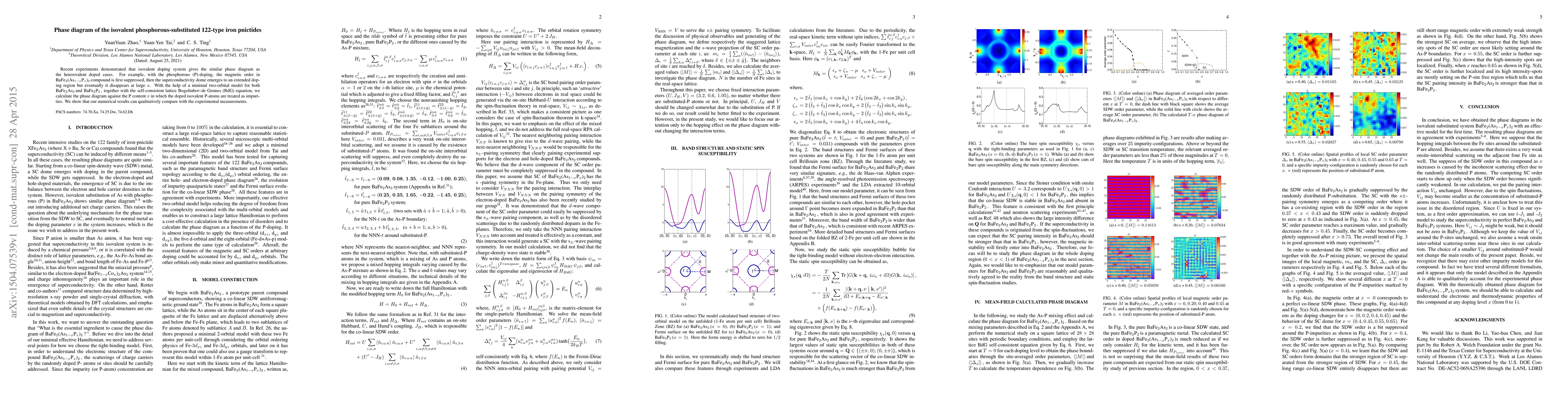Recent experiments demonstrated that isovalent doping system gives the similar phase diagram as the heterovalent doped cases. For example, with the phosphorous (P)-doping, the magnetic order in BaFe$_{2}$(As$_{1-x}$P$_{x}$)$_{2}$ compound is first suppressed, then the superconductivity dome emerges to an extended doping region but eventually it disappears at large $x$. With the help of a minimal two-orbital model for both BaFe$_{2}$As$_{2}$ and BaFe$_{2}$P$_{2}$, together with the self-consistent lattice Bogoliubov-de Gennes (BdG) equation, we calculate the phase diagram against the P content $x$ in which the doped isovalent P-atoms are treated as impurities. We show that our numerical results can qualitatively compare with the experimental measurements.