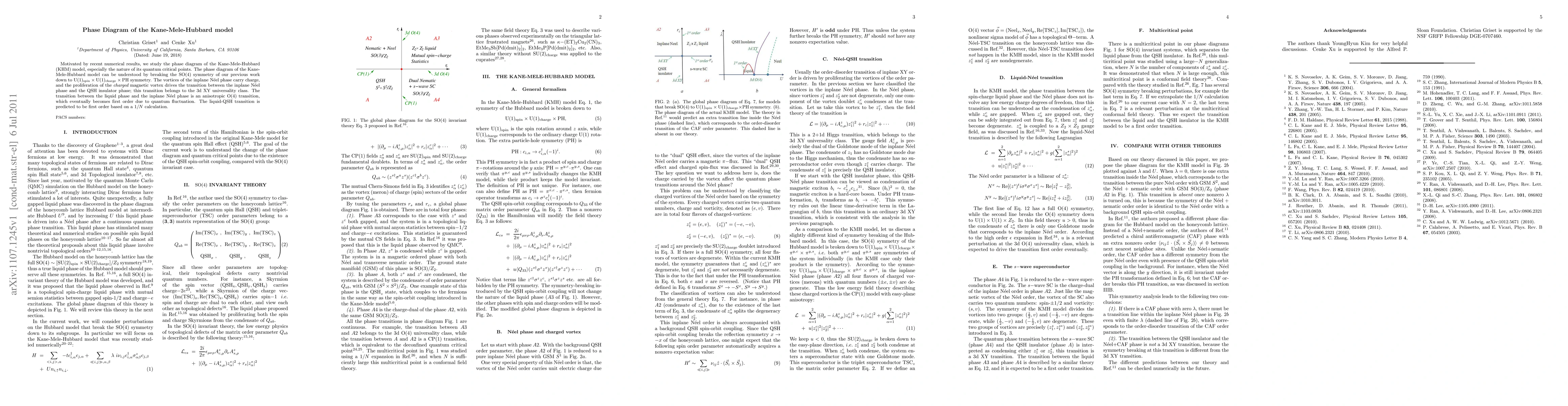 Motivated by recent numerical results, we study the phase diagram of the Kane-Mele-Hubbard (KHM) model, especially the nature of its quantum critical points. The phase diagram of the Kane-Mele-Hubbard model can be understood by breaking the SO(4) symmetry of our previous work down to U(1)_spin x U(1)_charge x PH symmetry. The vortices of the inplane Neel phase carry charge, and the proliferation of the charged magnetic vortex drives the transition between the inplane Neel phase and the QSH insulator phase; this transition belongs to the 3d XY universality class. The transition between the liquid phase and the inplane Neel phase is an anisotropic O(4) transition, which eventually becomes first order due to quantum fluctuation. The liquid-QSH transition is predicted to be first order based on a 1/N calculation.
