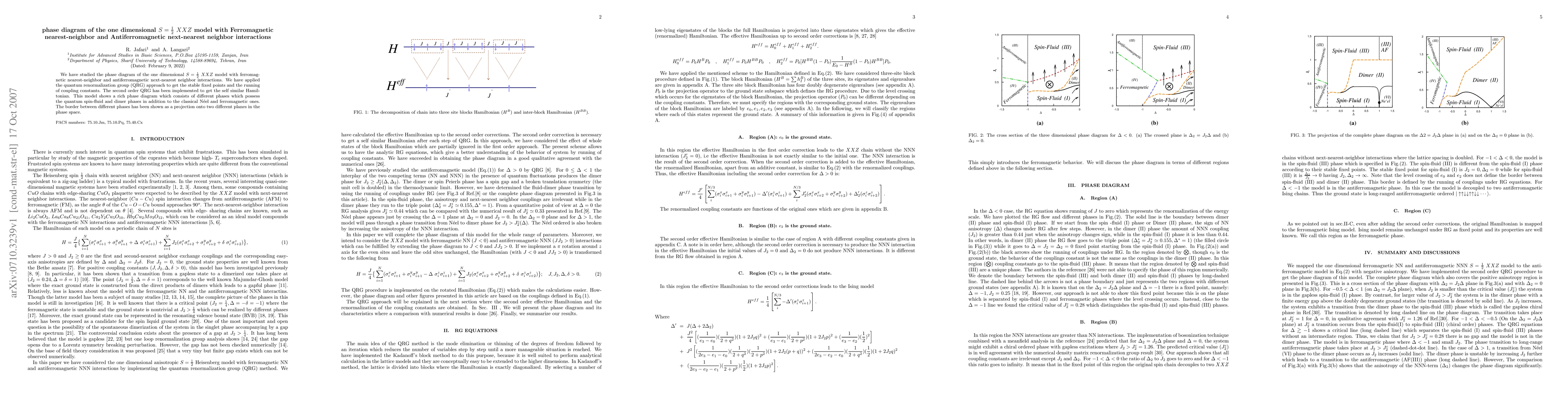 This paper investigates the phase diagram of the one-dimensional $S=1/2$ $XXZ$ model with mixed ferromagnetic and antiferromagnetic interactions using quantum renormalization group (QRG) methods. The study reveals a diverse phase diagram featuring quantum spin-fluid, dimer, Néel, and ferromagnetic phases, with phase boundaries projected onto two-dimensional planes.
