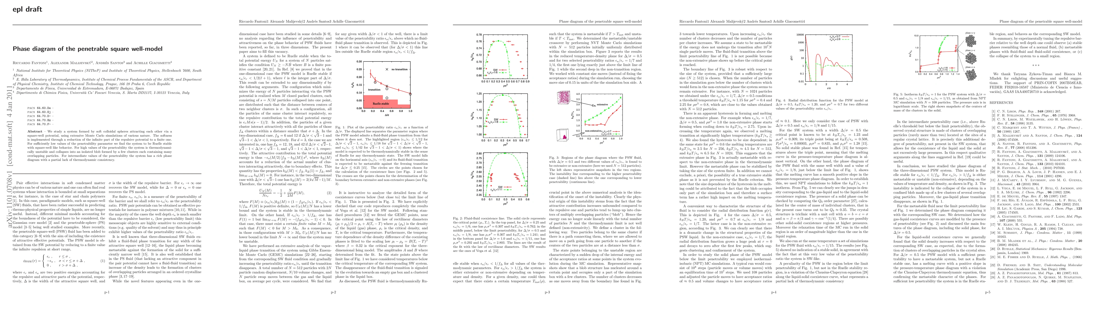 This paper investigates the phase behavior of soft colloidal spheres interacting via a square-well potential using Monte Carlo simulations. It finds stable square-well behavior at low penetrability, instability and collapse into clusters at high penetrability, and a complex phase diagram with thermodynamic inconsistencies at intermediate penetrability.