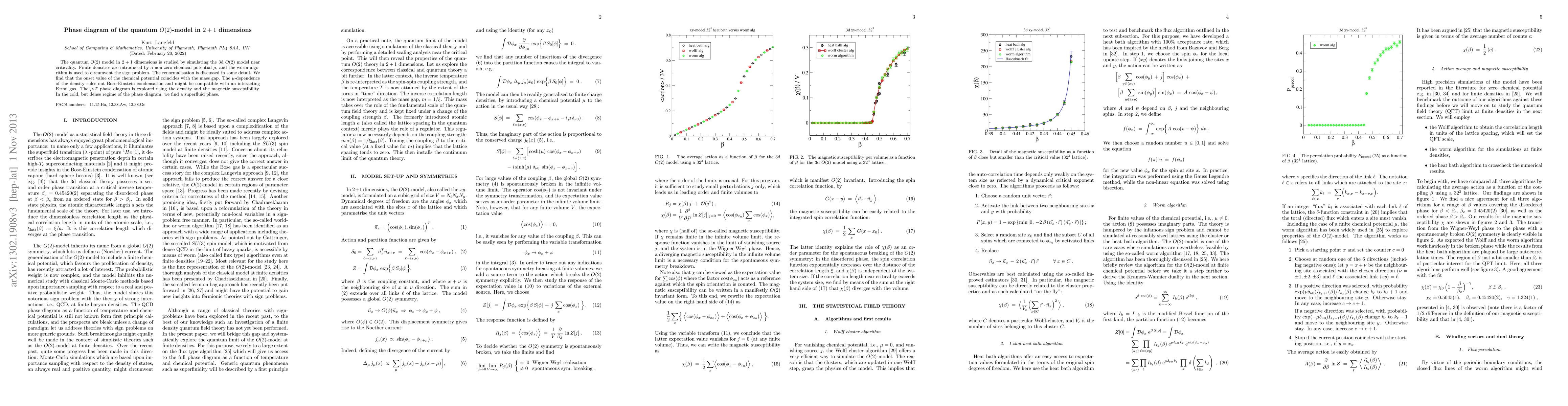 The quantum O(2) model in 2+1 dimensions is studied by simulating the 3d O(2) model near criticality. Finite densities are introduced by a non-zero chemical potential mu, and the worm algorithm is used to circumvent the sign problem. The renormalisation is discussed in some detail. We find that the onset value of the chemical potential coincides with the mass gap. The mu-dependence of the density rules out Bose-Einstein condensation and might be compatible with an interacting Fermi gas. The mu-T phase diagram is explored using the density and the magnetic susceptibility. In the cold, but dense regime of the phase diagram, we find a superfluid phase.