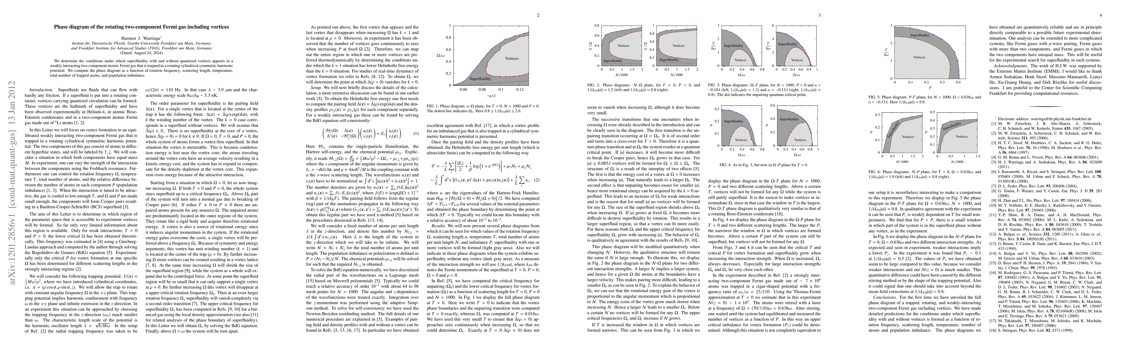 This paper investigates the phase diagram of a rotating two-component Fermi gas, identifying conditions for superfluidity with and without vortices, influenced by rotation frequency, scattering length, temperature, atom number, and population imbalance. The study reveals the interplay between these factors and the emergence of superfluid phases.