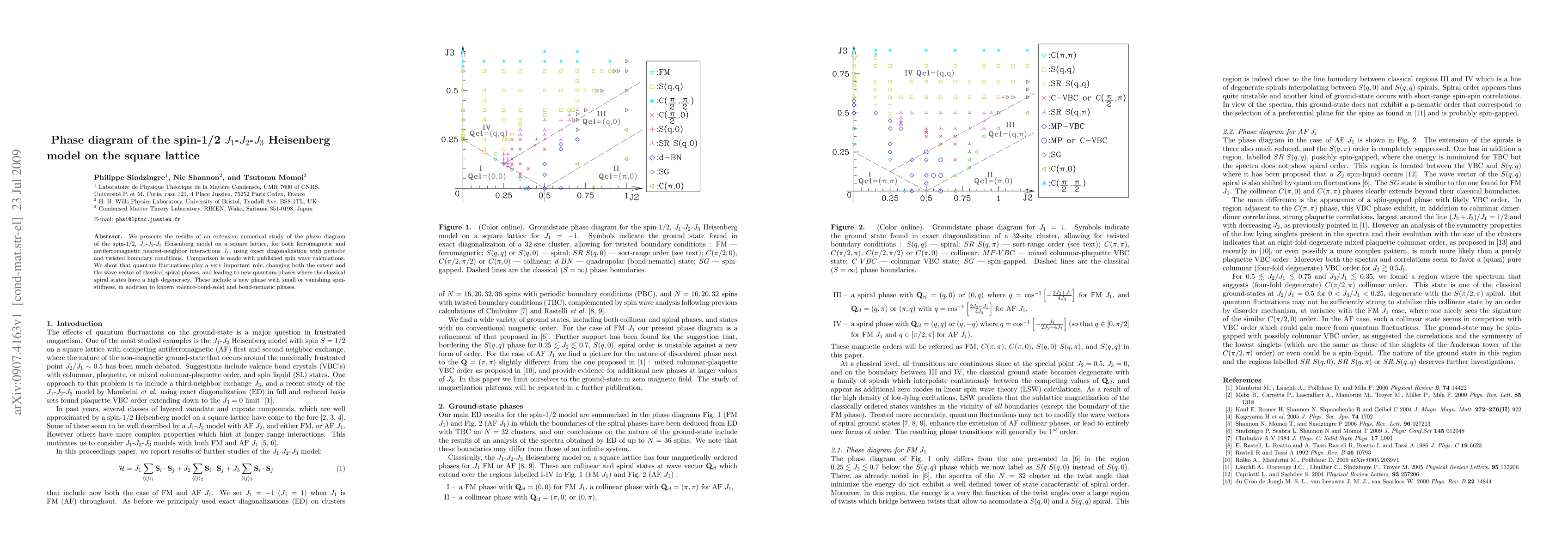 We presents the results of an extensive numerical study of the phase diagram of the spin-1/2, \protect{$J_1$-$J_2$-$J_3$} Heisenberg model on a square lattice, for both ferromagnetic and antiferromagnetic nearest-neighbor interactions $J_1$, using exact diagonalization with periodic and twisted boundary conditions. Comparison is made with published spin wave calculations. We show that quantum fluctuations play a very important role, changing both the extent and the wave vector of classical spiral phases, and leading to new quantum phases where the classical spiral states have a high degeneracy. These include a new phase with small or vanishing spin-stiffness, in addition to known valence-bond-solid and bond-nematic phases.