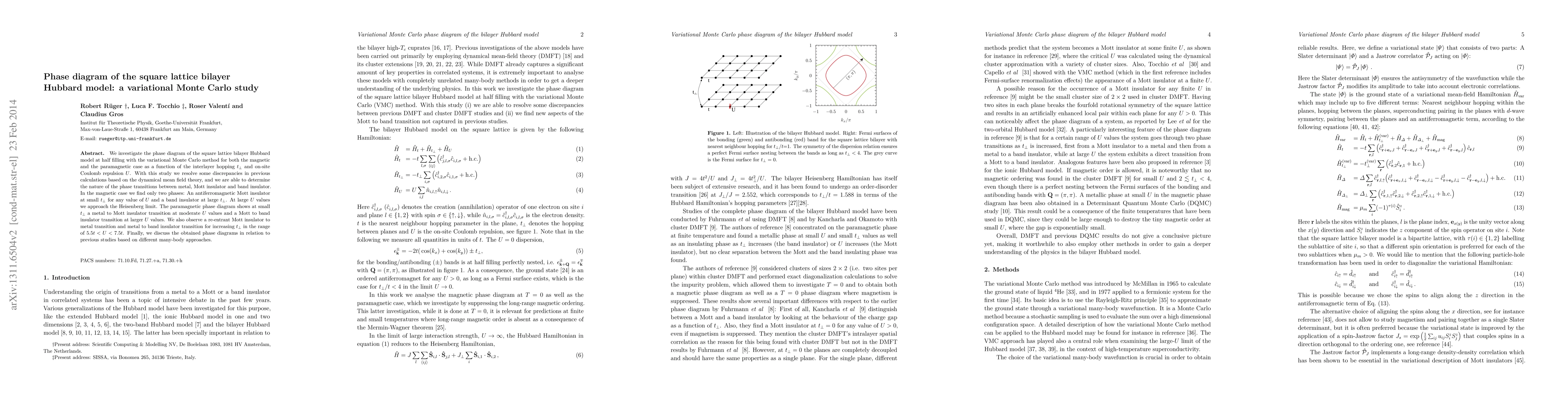 This study uses variational Monte Carlo to explore the phase diagram of the square lattice bilayer Hubbard model, resolving discrepancies in previous calculations. It reveals distinct magnetic and paramagnetic phases, including transitions between metal, Mott insulator, and band insulator states, and discusses these findings in the context of prior research.