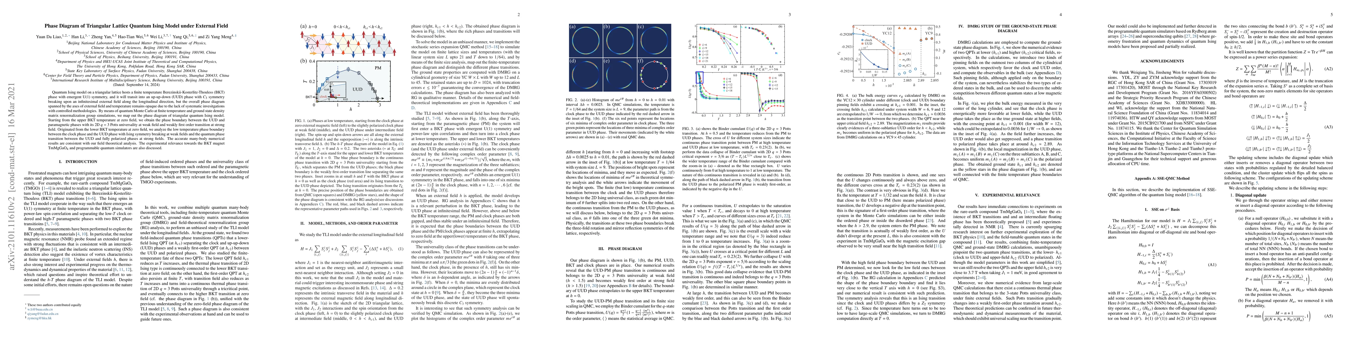 This paper maps out the phase diagram of the triangular lattice quantum Ising model using quantum Monte Carlo and density matrix renormalization group simulations, revealing transitions between BKT, UUD, and clock phases under varying external fields and temperatures, and aligns with field theoretical predictions and experimental relevance to TmMgGaO$_4$ and quantum simulators.