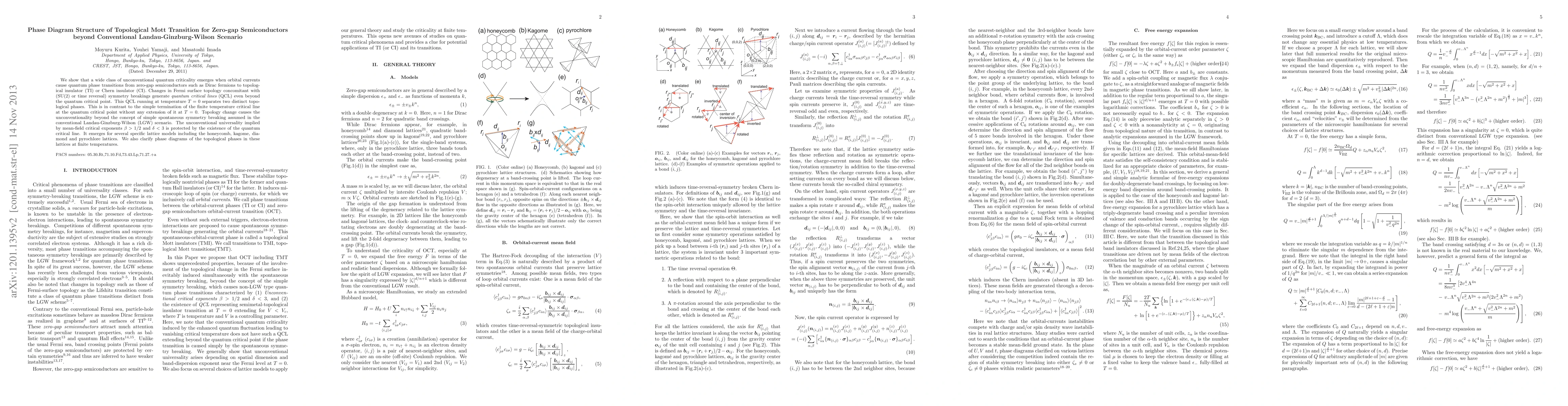 We show that a wide class of unconventional quantum criticality emerges when orbital currents cause quantum phase transitions from zero-gap semiconductors such as Dirac fermions to topological insulator (TI) or Chern insulator (CI). Changes in Fermi surface topology concomitant with (SU(2) or time reversal) symmetry breakings generate quantum critical lines (QCL) even beyond the quantum critical point. This QCL running at temperature $T=0$ separates two distinct topological phases. This is in contrast to the simple termination of the finite temperature critical line at the quantum critical point without any extension of it at $T=0$. Topology change causes the unconventionality beyond the concept of simple spontaneous symmetry breaking assumed in the conventional Landau-Ginzburg-Wilson (LGW) scenario. The unconventional universality implied by mean-field critical exponents beta>1/2 and delta<3 is protected by the existence of the quantum critical line. It emerges for several specific lattice models including the honeycomb, kagome, diamond and pyrochlore lattices. We also clarify phase diagrams of the topological phases in these lattices at finite temperatures.