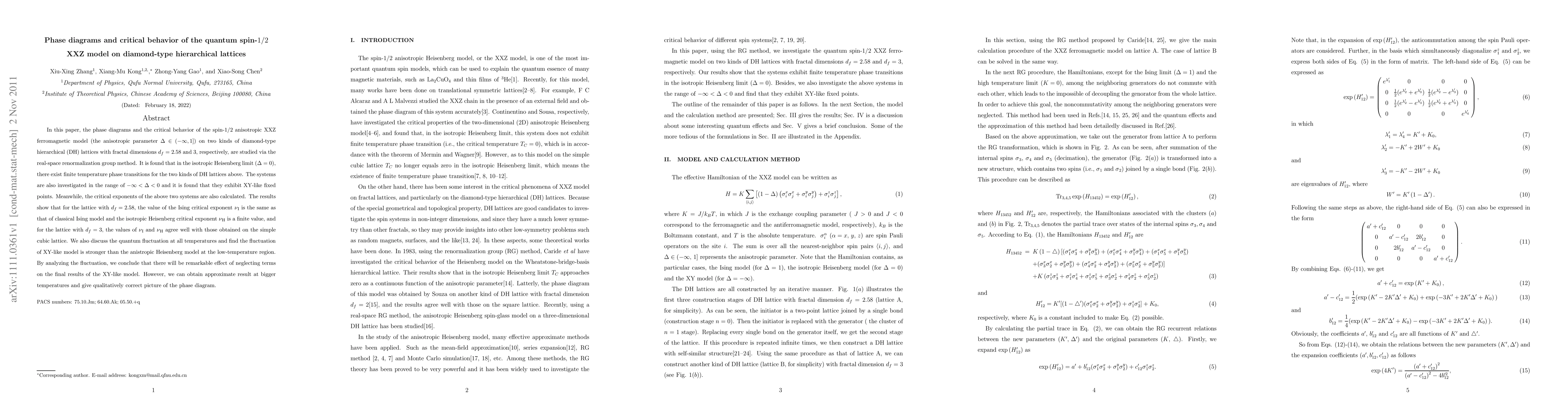 In this paper, the phase diagrams and the critical behavior of the spin-1/2 anisotropic XXZ ferromagnetic model (the anisotropic parameter {\Delta}\in(-\infty,1]) on two kinds of diamond-type hierarchical (DH) lattices with fractal dimensions d_{f}=2.58 and 3, respectively, are studied via the real-space renormalization group method. It is found that in the isotropic Heisenberg limit ({\Delta}=0), there exist finite temperature phase transitions for the two kinds of DH lattices above. The systems are also investigated in the range of -\infty<{\Delta}<0 and it is found that they exhibit XY-like fixed points. Meanwhile, the critical exponents of the above two systems are also calculated. The results show that for the lattice with d_{f}=2.58, the value of the Ising critical exponent {\nu}_{I} is the same as that of classical Ising model and the isotropic Heisenberg critical exponent {\nu}_{H} is a finite value, and for the lattice with d_{f}=3, the values of {\nu}_{I} and {\nu}_{H} agree well with those obtained on the simple cubic lattice. We also discuss the quantum fluctuation at all temperatures and find the fluctuation of XY-like model is stronger than the anistropic Heisenberg model at the low-temperature region. By analyzing the fluctuation, we conclude that there will be remarkable effect of neglecting terms on the final results of the XY-like model. However, we can obtain approximate result at bigger temperatures and give qualitatively correct picture of the phase diagram.