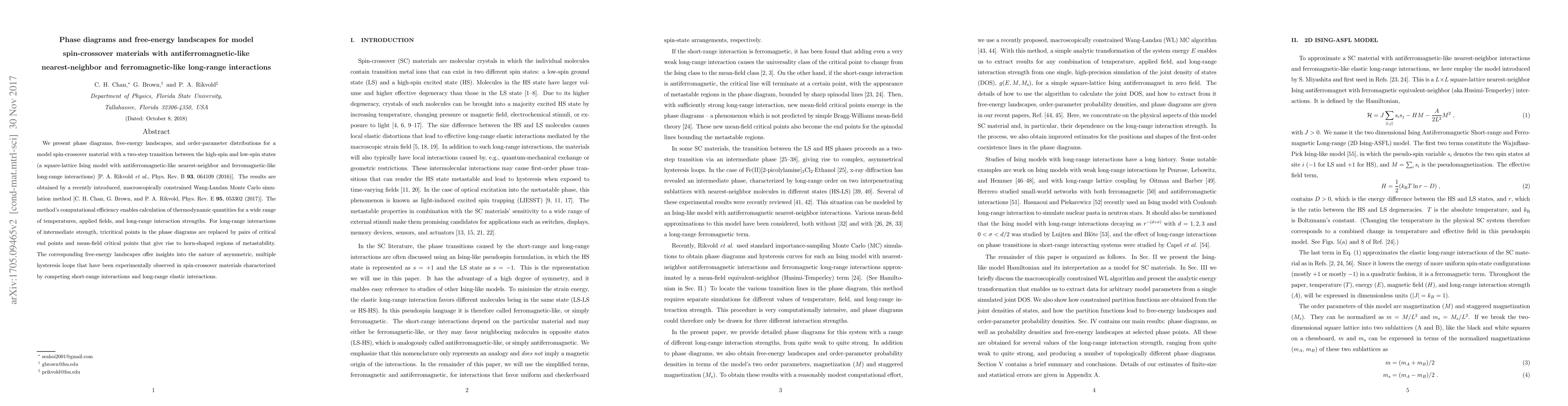 This paper presents phase diagrams and free-energy landscapes for a model spin-crossover material using a macroscopically constrained Wang-Landau Monte Carlo simulation method. It reveals complex behavior, including horn-shaped regions of metastability and insights into asymmetric, multiple hysteresis loops observed in experiments.