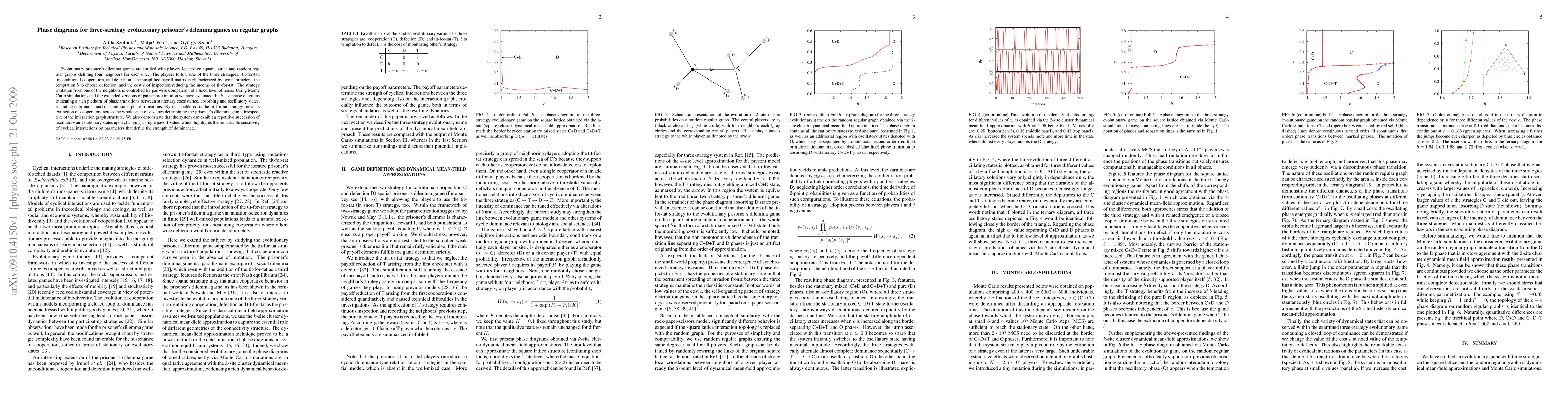 This paper investigates evolutionary prisoner's dilemma games on square lattices and random regular graphs, focusing on three strategies: tit-for-tat, unconditional cooperation, and defection. It evaluates $b-c$ phase diagrams revealing diverse phase transitions, showing that tit-for-tat can sustain cooperators despite varying temptation levels, and that parameter changes can induce oscillatory and stationary states.