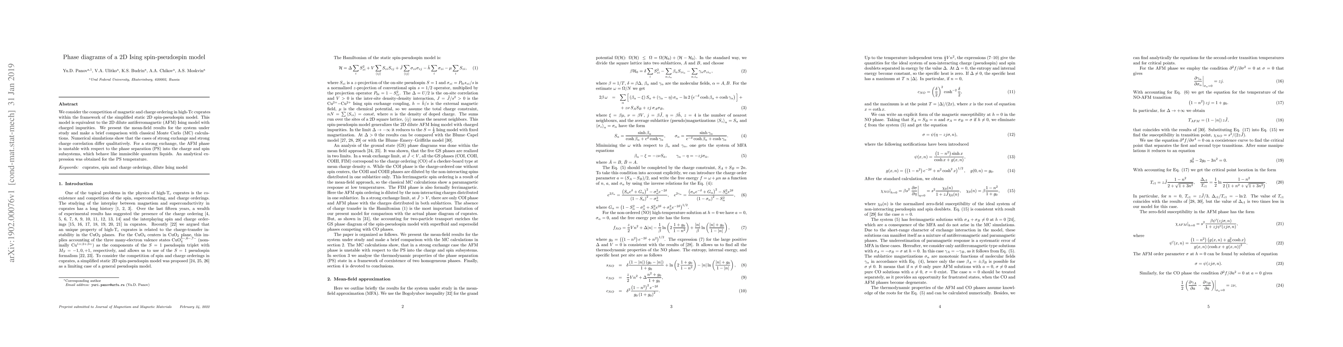 Researchers studied a 2D model that combines magnetic and charge ordering in high-Tc cuprates, finding that strong exchange leads to unstable AFM phases with phase separation into immiscible quantum liquids.
