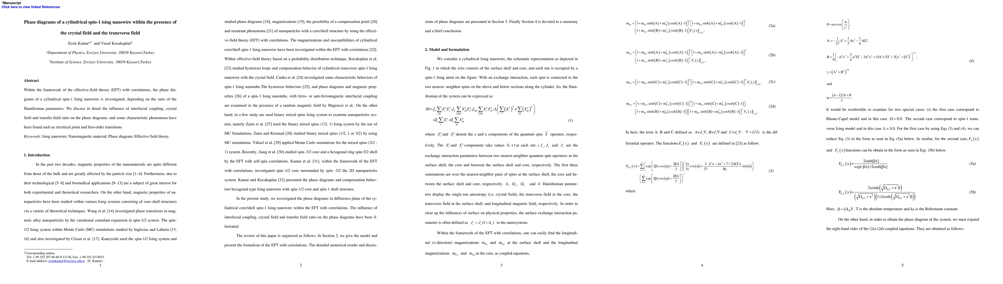 This paper investigates the phase diagrams of a cylindrical spin-1 Ising nanowire using effective-field theory with correlations, focusing on the interplay between crystal field, transverse field, and interfacial coupling. It identifies tricritical points and first-order transitions in the system.