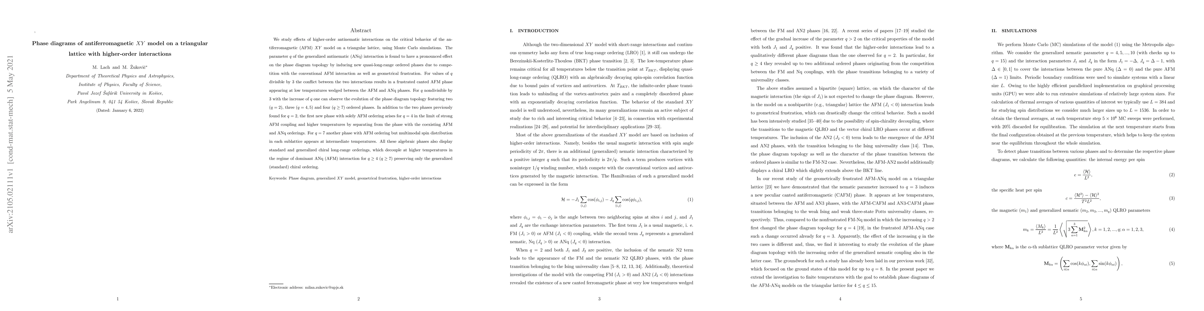 Researchers studied how higher-order interactions in an antiferromagnetic XY model on a triangular lattice affect its critical behavior, finding new quasi-long-range ordered phases and chiral long-range orderings depending on the interaction strength.