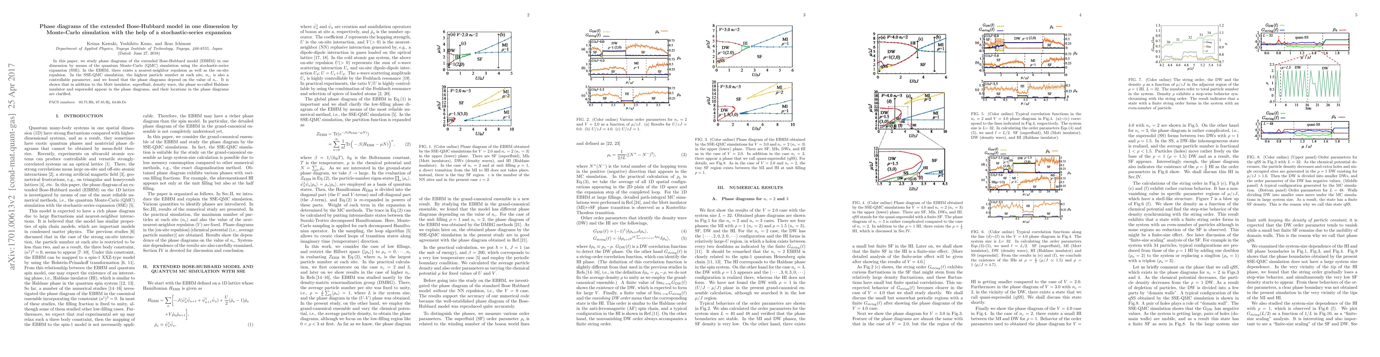 In this paper, we study phase diagrams of the extended Bose-Hubbard model (EBHM) in one dimension by means of the quantum Monte-Carlo (QMC) simulation using the stochastic-series expansion (SSE).In the EBHM, there exists a nearest-neighbor repulsion as well as the on-site repulsion. In the SSE-QMC simulation, the highest particle number at each site, $n_c$, is also a controllable parameter, and we found that the phase diagrams depend on the value of $n_c$. It is shown that in addition to the Mott insulator, superfluid, density wave, the phase so-called Haldane insulator and supersolid appear in the phase diagrams, and their locations in the phase diagrams are clarified.