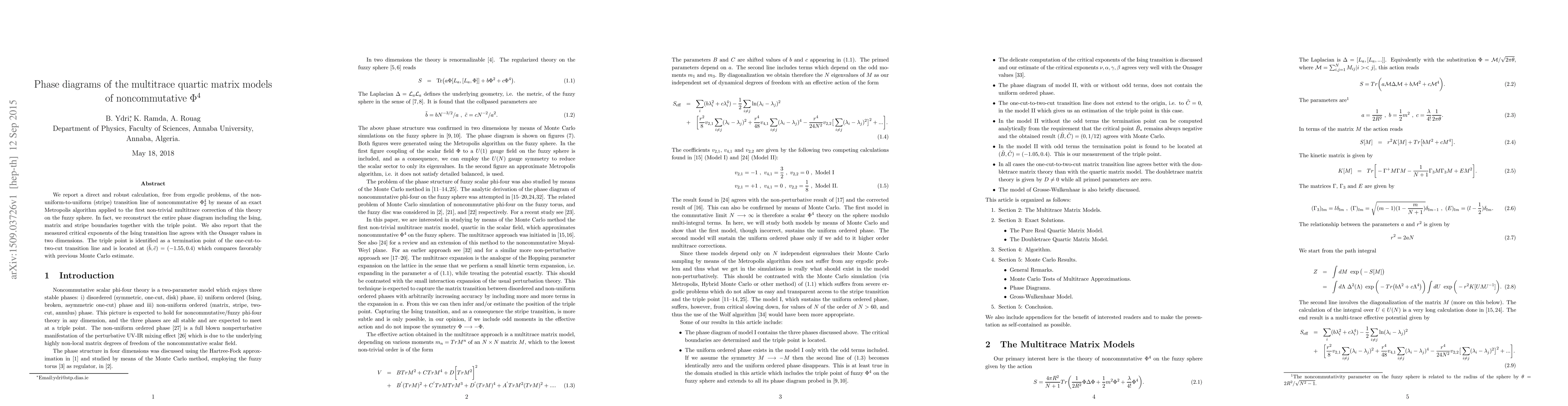 We report a direct and robust calculation, free from ergodic problems, of the non-uniform-to-uniform (stripe) transition line of noncommutative $\Phi^4_2$ by means of an exact Metropolis algorithm applied to the first non-trivial multitrace correction of this theory on the fuzzy sphere. In fact, we reconstruct the entire phase diagram including the Ising, matrix and stripe boundaries together with the triple point. We also report that the measured critical exponents of the Ising transition line agrees with the Onsager values in two dimensions. The triple point is identified as a termination point of the one-cut-to-two-cut transition line and is located at $(\tilde{b},\tilde{c})=(-1.55,0.4)$ which compares favorably with previous Monte Carlo estimate.