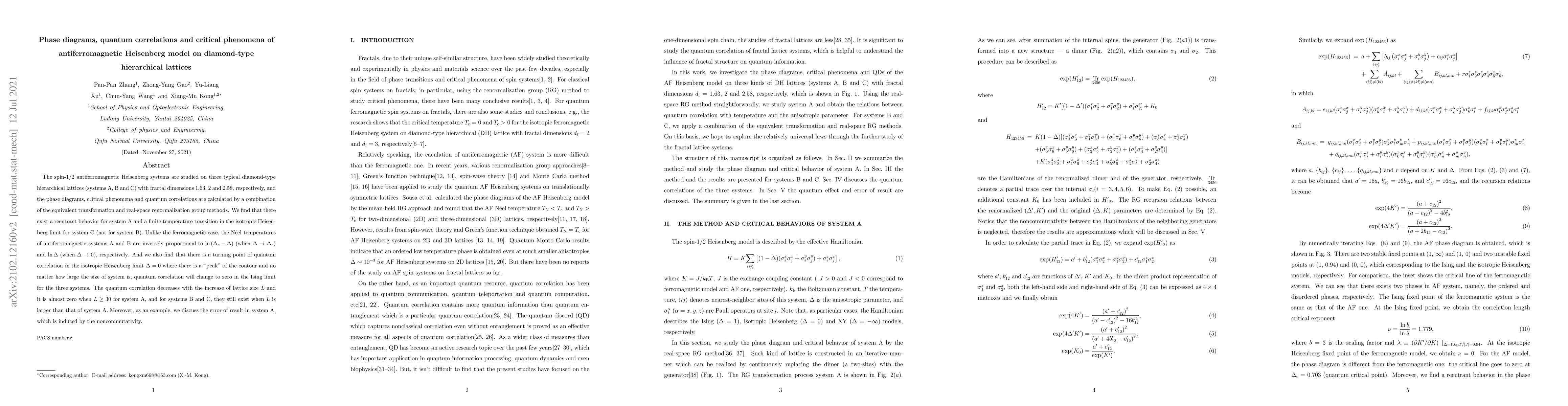 The spin-1/2 antiferromagnetic Heisenberg systems are studied on three typical diamond-type hierarchical lattices (systems A, B and C) with fractal dimensions 1.63, 2 and 2.58, respectively, and the phase diagrams, critical phenomena and quantum correlations are calculated by a combination of the equivalent transformation and real-space renormalization group methods. We find that there exist a reentrant behavior for system A and a finite temperature transition in the isotropic Heisenberg limit for system C (not for system B). Unlike the ferromagnetic case, the Neel temperatures of antiferromagnetic systems A and B are inversely proportional to ln(Delta_c-Delta) (when Delta->Delta_c) and ln Delta (when Delta->0), respectively. And we also find that there is a turning point of quantum correlation in the isotropic Heisenberg limit Delta=0 where there is a peak of the contour and no matter how large the size of system is, quantum correlation will change to zero in the Ising limit for the three systems. The quantum correlation decreases with the increase of lattice size L and it is almost zero when L>=30 for system A, and for systems B and C, they still exist when L is larger than that of system A. Moreover, as an example, we discuss the error of result in system A, which is induced by the noncommutativity.