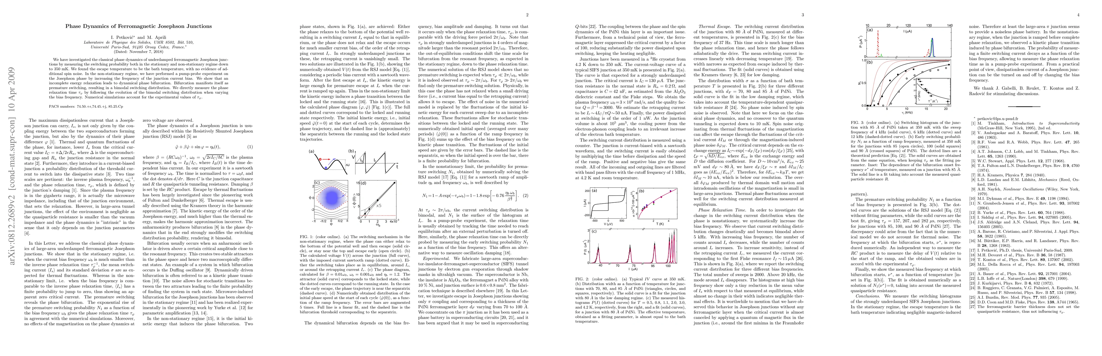 We have investigated the classical phase dynamics of underdamped ferromagnetic Josephson junctions by measuring the switching probability in both the stationary and nonstationary regimes down to 350 mK. We found the escape temperature to be the bath temperature, with no evidence of additional spin noise. In the nonstationary regime, we have performed a pump-probe experiment on the Josephson phase by increasing the frequency of the junction current bias. We show that an incomplete energy relaxation leads to dynamical phase bifurcation. Bifurcation manifests itself as premature switching, resulting in a bimodal switching distribution. We directly measure the phase relaxation time by following the evolution of the bimodal switching distribution when varying the bias frequency. Numerical simulations account for the experimental values of the phase relaxation time.