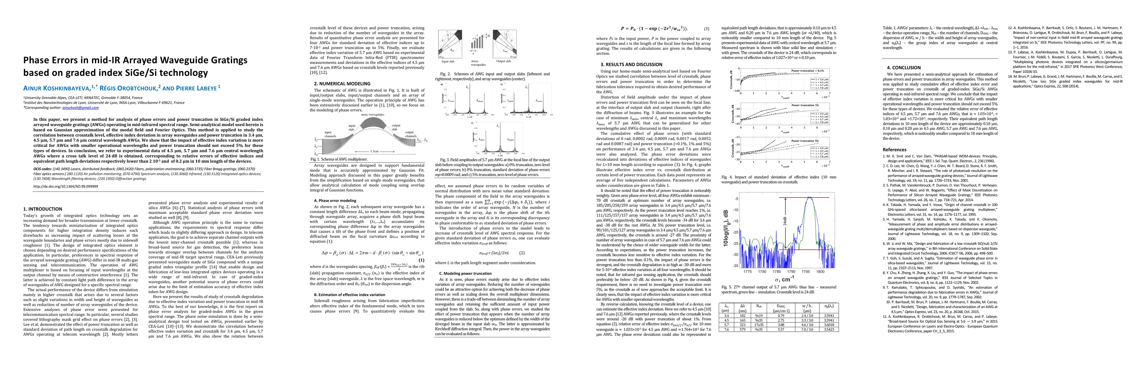 This paper analyzes phase errors in mid-IR arrayed waveguide gratings using a semi-analytical model, finding that effective index variation is more critical for shorter wavelengths and power truncation should not exceed 5%.