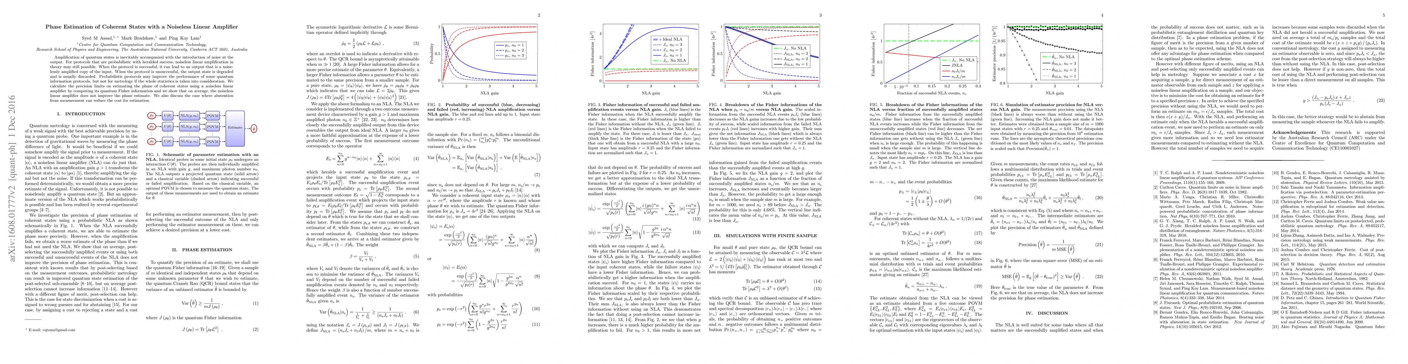 This paper investigates the precision limits of phase estimation for coherent states using a noiseless linear amplifier, finding that on average, it does not improve phase estimates. The study also explores how abstention from measurement can reduce the cost for estimation.
