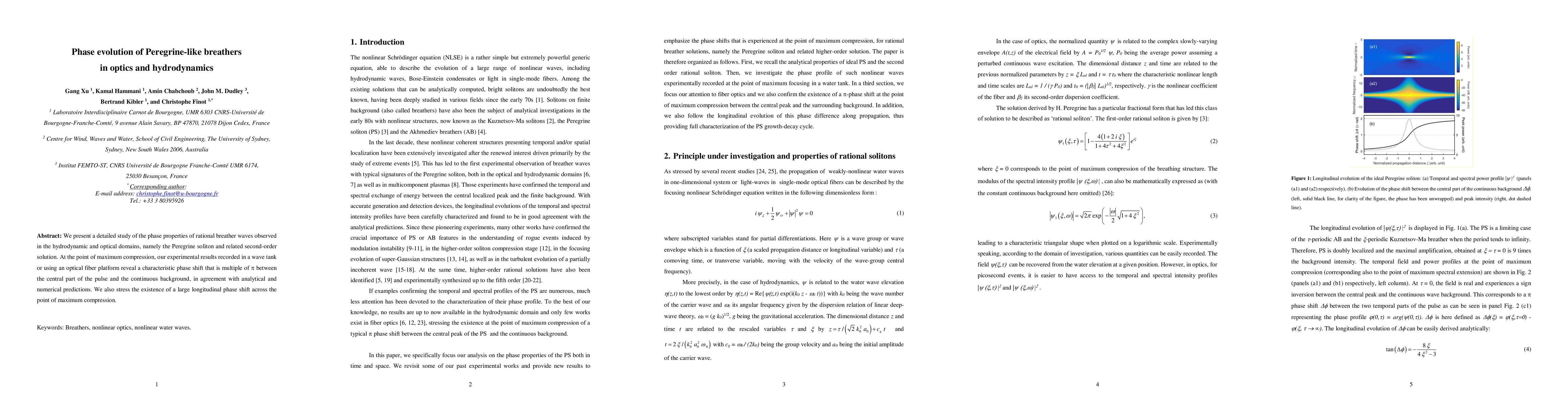 This paper investigates the phase evolution of Peregrine-like breathers in both hydrodynamic and optical systems, revealing a characteristic $\pi$ phase shift at maximum compression, corroborated by experimental and theoretical findings. It also highlights significant longitudinal phase shifts across the peak compression point.