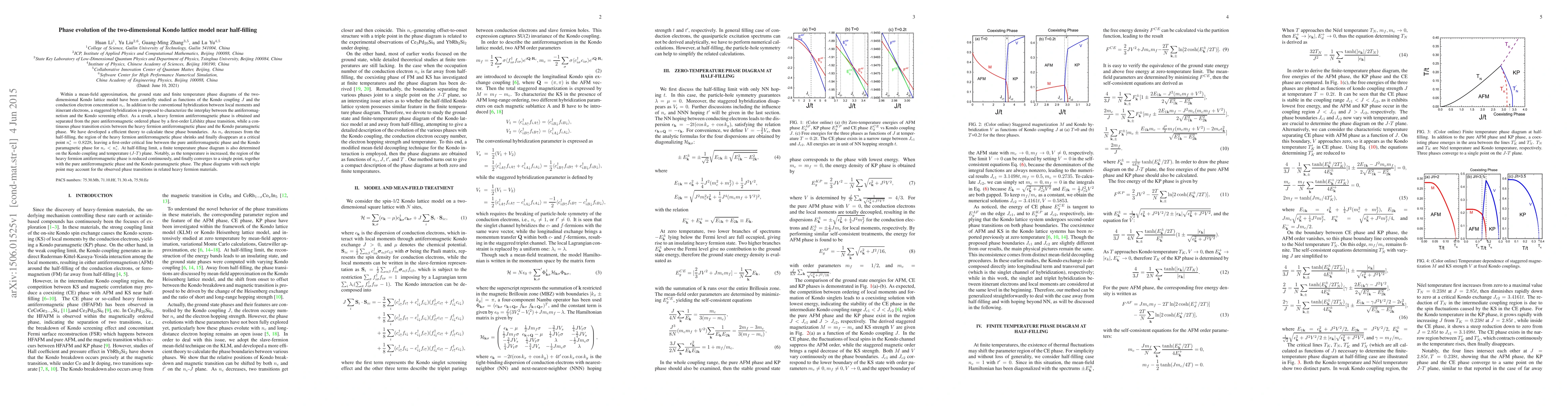 This research explores the phase evolution of the two-dimensional Kondo lattice model using mean-field approximation, identifying a heavy fermion antiferromagnetic phase and a first-order Lifshitz transition. The study reveals a critical point where the heavy fermion phase vanishes, leading to a first-order critical line between antiferromagnetic and Kondo paramagnetic phases.