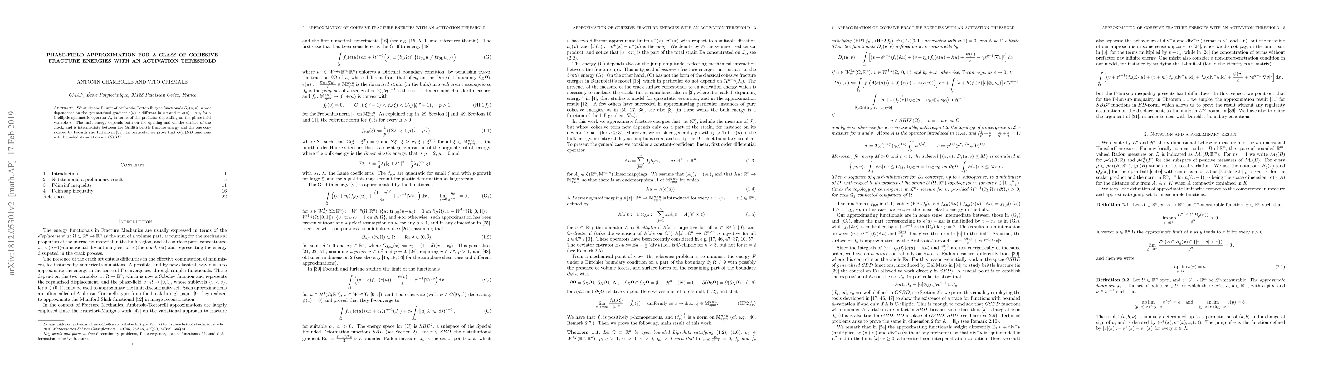 This paper investigates the $\Gamma$-limit of Ambrosio-Tortorelli-type functionals with a phase-field approximation for a class of cohesive fracture energies featuring an activation threshold. The study shows that these functionals converge to a form intermediate between Griffith brittle fracture energy and cohesive energy models, proving that $G(S)BD$ functions with bounded $\mathbb{A}$-variation are $(S)BD$.