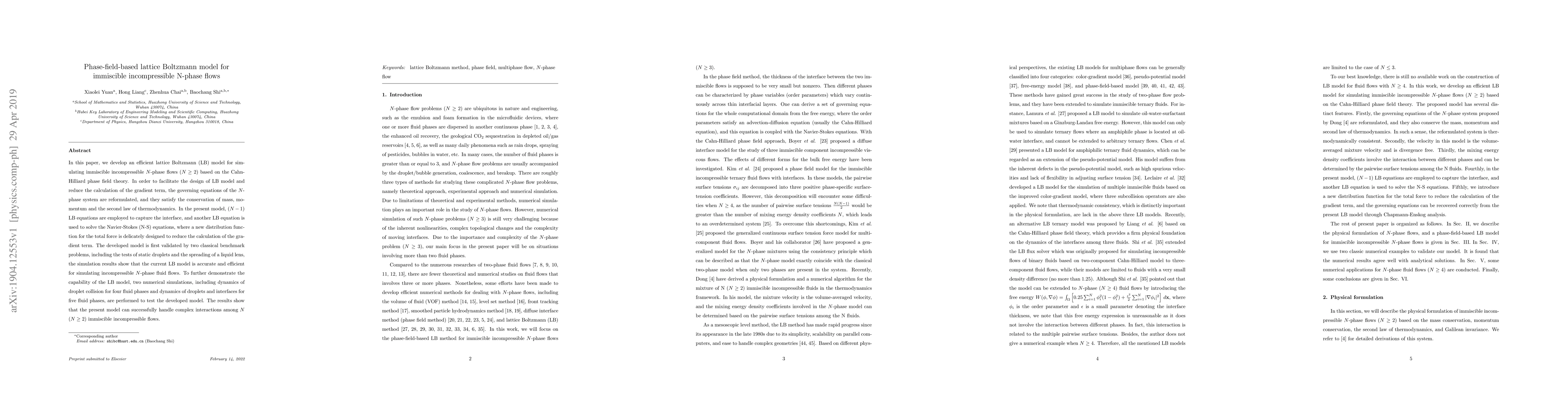 The paper presents a novel lattice Boltzmann model for N-phase flows that efficiently captures interfaces using (N-1) LB equations and another for solving Navier-Stokes equations, reducing gradient term calculations.