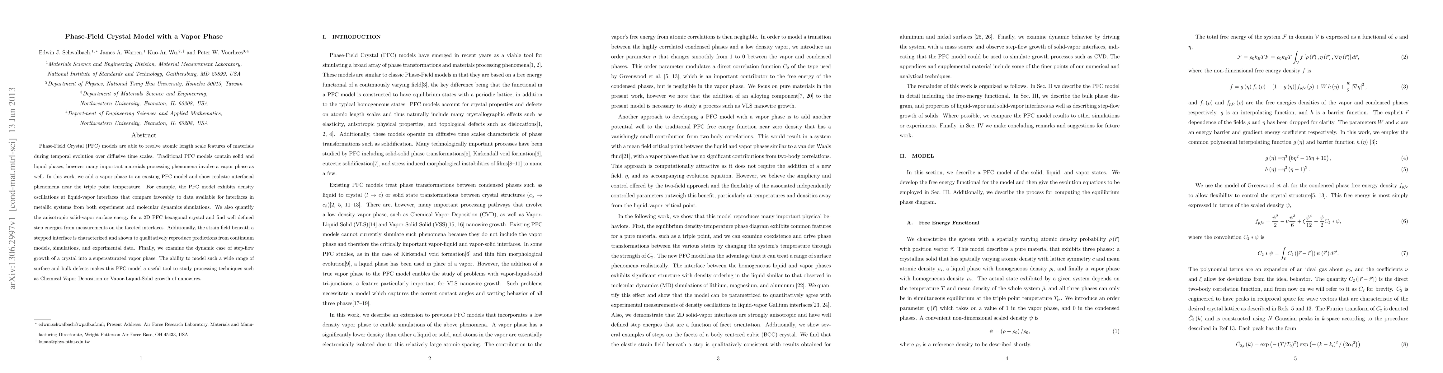 This paper extends the Phase-Field Crystal model to include a vapor phase, enabling it to capture interfacial phenomena near the triple point, such as density oscillations at liquid-vapor interfaces and anisotropic solid-vapor surface energies. The model also accurately predicts the strain field beneath stepped interfaces and dynamic crystal growth in supersaturated vapors, making it a valuable tool for studying material processing techniques.