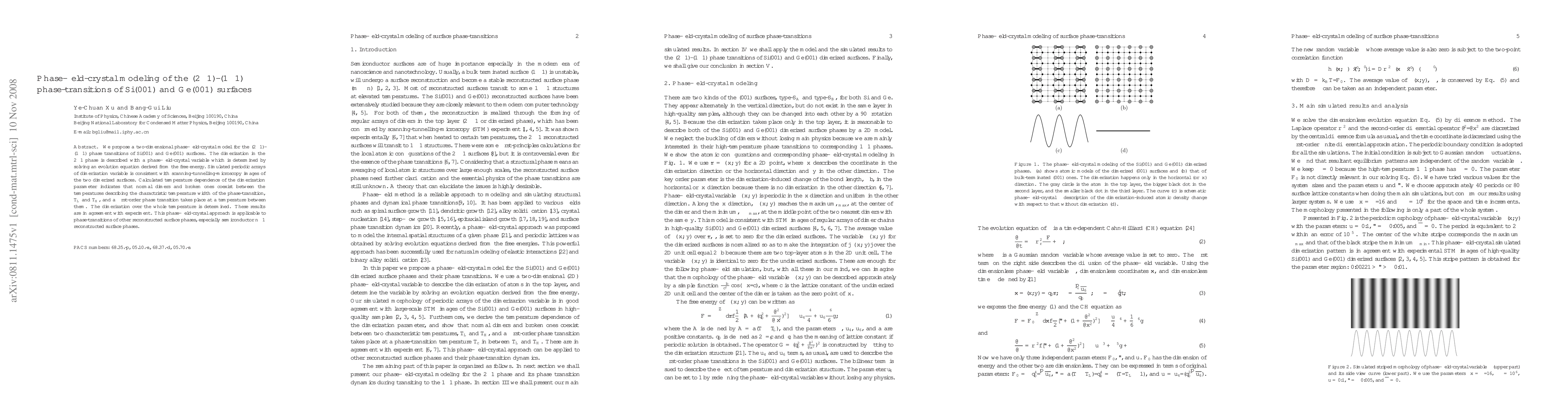 We propose a two-dimensional phase-field-crystal model for the (2$\times$1)-(1$\times$1) phase transitions of Si(001) and Ge(001) surfaces. The dimerization in the 2$\times$1 phase is described with a phase-field-crystal variable which is determined by solving an evolution equation derived from the free energy. Simulated periodic arrays of dimerization variable is consistent with scanning-tunnelling-microscopy images of the two dimerized surfaces. Calculated temperature dependence of the dimerization parameter indicates that normal dimers and broken ones coexist between the temperatures describing the charactristic temperature width of the phase-transition, $T_L$ and $T_H$, and a first-order phase transition takes place at a temperature between them. The dimerization over the whole temperature is determined. These results are in agreement with experiment. This phase-field-crystal approach is applicable to phase-transitions of other reconstructed surface phases, especially semiconductor $n\times$1 reconstructed surface phases.