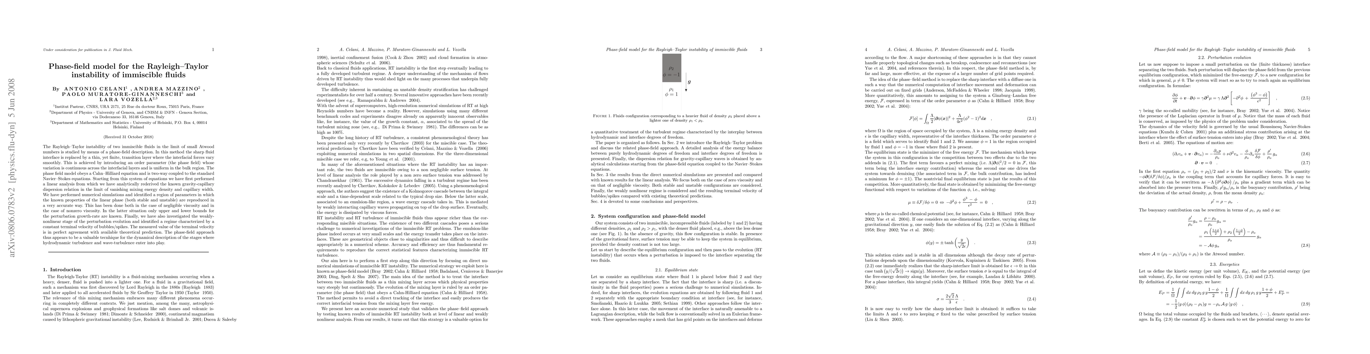 Researchers developed a phase-field model to study the Rayleigh-Taylor instability of immiscible fluids, accurately predicting properties like terminal velocity and growth rate in both low- and high-viscosity regimes.