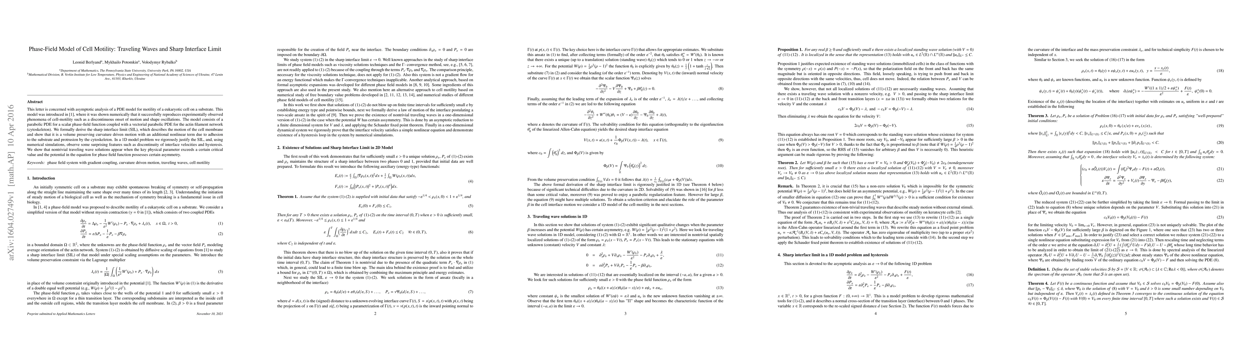 A combination of numerical simulations and analytical solutions were used to study the behavior of cell motility.