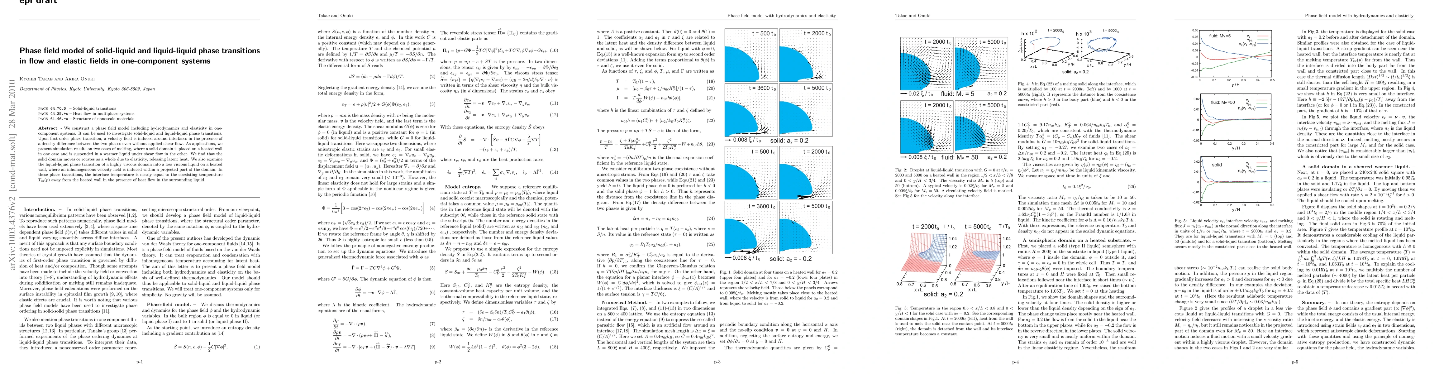 This paper presents a phase field model that integrates hydrodynamics and elasticity to simulate solid-liquid and liquid-liquid phase transitions in one-component systems. It demonstrates the model's application in melting scenarios and liquid-liquid transitions, revealing the influence of latent heat release and induced velocity fields around phase interfaces.