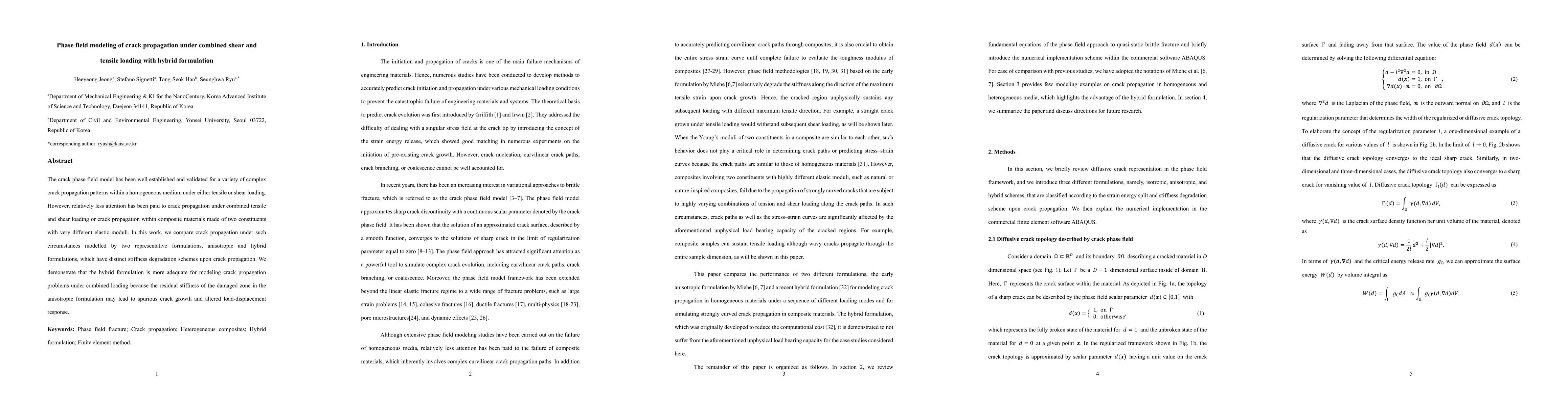 This paper compares crack propagation models under combined tensile and shear loading using anisotropic and hybrid formulations, finding that the hybrid formulation is more effective due to its better handling of stiffness degradation and avoidance of spurious crack growth.
