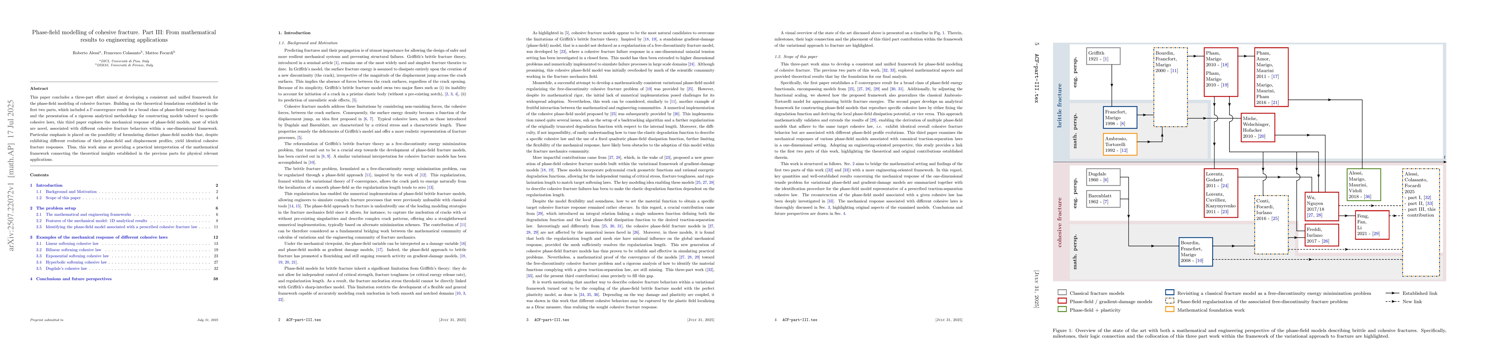 This paper concludes a three-part effort aimed at developing a consistent and unified framework for the phase-field modeling of cohesive fracture. Building on the theoretical foundations established in the first two parts, which included a $\Gamma$-convergence result for a broad class of phase-field energy functionals and the presentation of a rigorous analytical methodology for constructing models tailored to specific cohesive laws, this third paper explores the mechanical response of phase-field models, most of which are novel, associated with different cohesive fracture behaviors within a one-dimensional framework. Particular emphasis is placed on the possibility of formulating distinct phase-field models that, despite exhibiting different evolutions of their phase-field and displacement profiles, yield identical cohesive fracture responses. Thus, this work aims at providing a practical interpretation of the mathematical framework connecting the theoretical insights established in the previous parts for physical relevant applications.